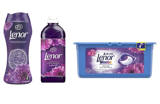 A Lenor Amethyst & Floral Bouquet színes ruhákhoz való mosószer, öblítő és parfümgyöngy pompás illattal rendelkezik, melyben a felpezsdítő bergamott, az elegáns frézia és az érzéki jázmin bársonyos elegye magabiztosságot sugall.