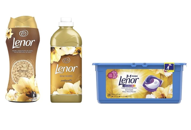 A Lenor Gold Orchid színes ruhákhoz való mosószer, öblítő és parfümgyöngy. Meleg, ábrándos illatában a vanília érzékisége megnyugtatóan keveredik a mimóza, méz, rózsa és érett őszibarack édes aromájával.