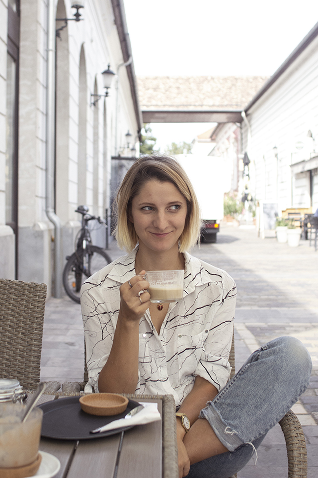A kényelem az elsődleges szempontom a ruhaválasztást illetően. A viseletes mom jeanst remekül kiegészíti ez a márvány mintás blúz. Egyszerű, de számomra tökéletes.