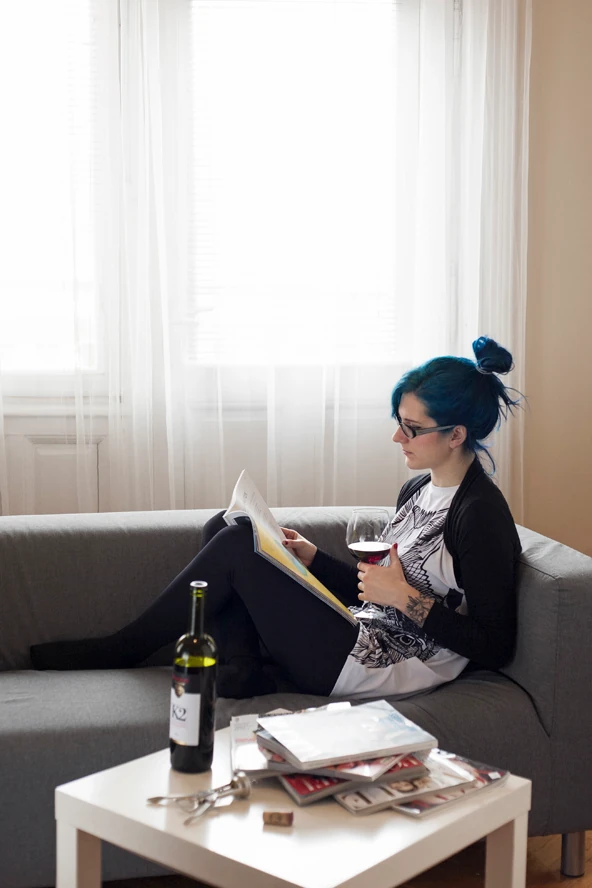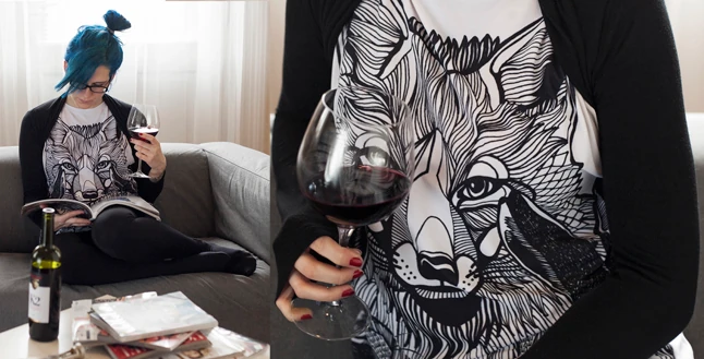 Végre 26-a, végre nyugi és pihenés. Ma nem megyek sehova, itthon bekuckózok és az utóbbi időben felhalmozott újságokat és egyéb olvasnivalókat fogom böngészni - egy kis felhőtlen borozgatással egybekötve. Az egyik kedvenc felsőmet vettem fel, ami csini és kényelmes egyben, ha esetleg váratlan vendég érkezne#8230;