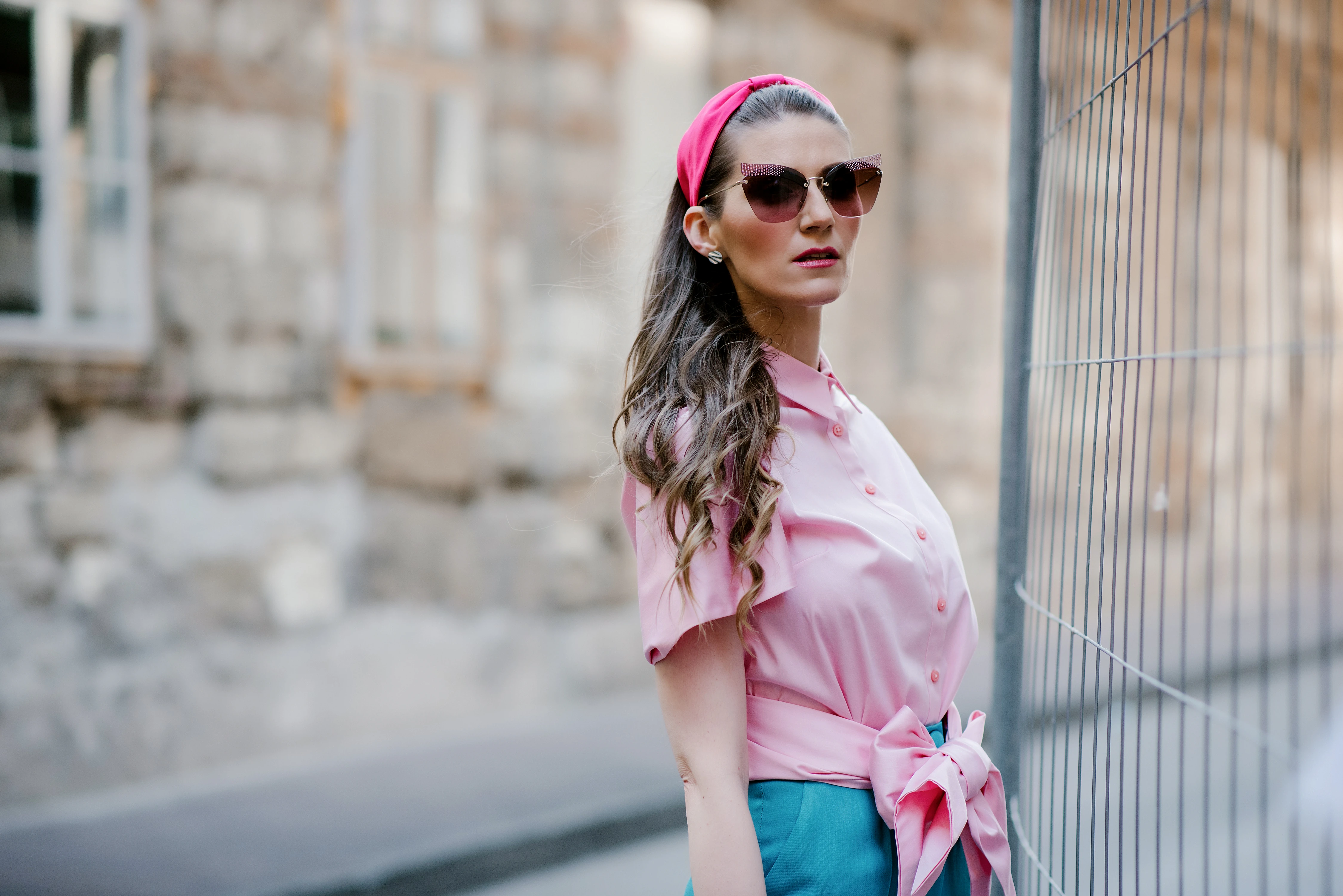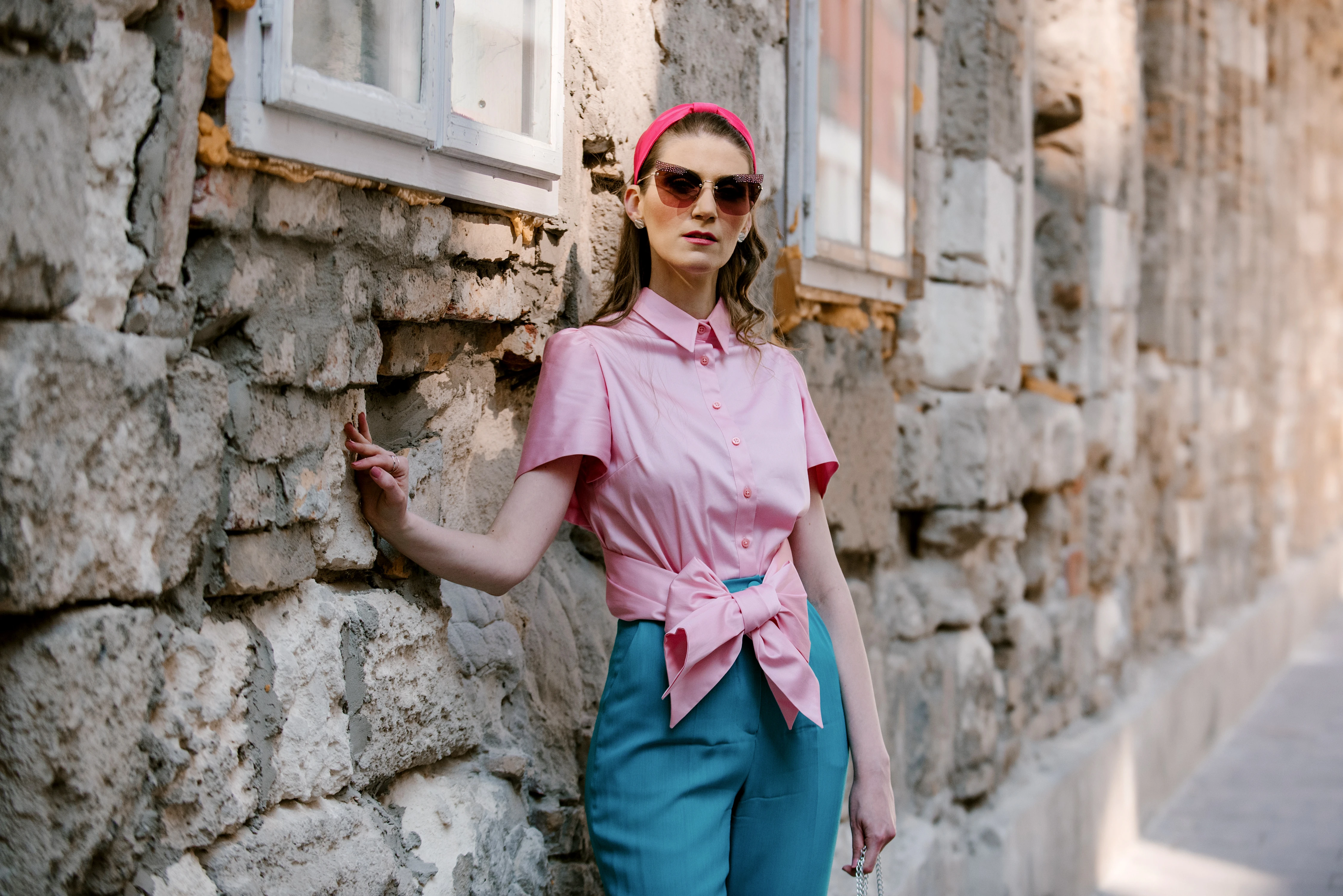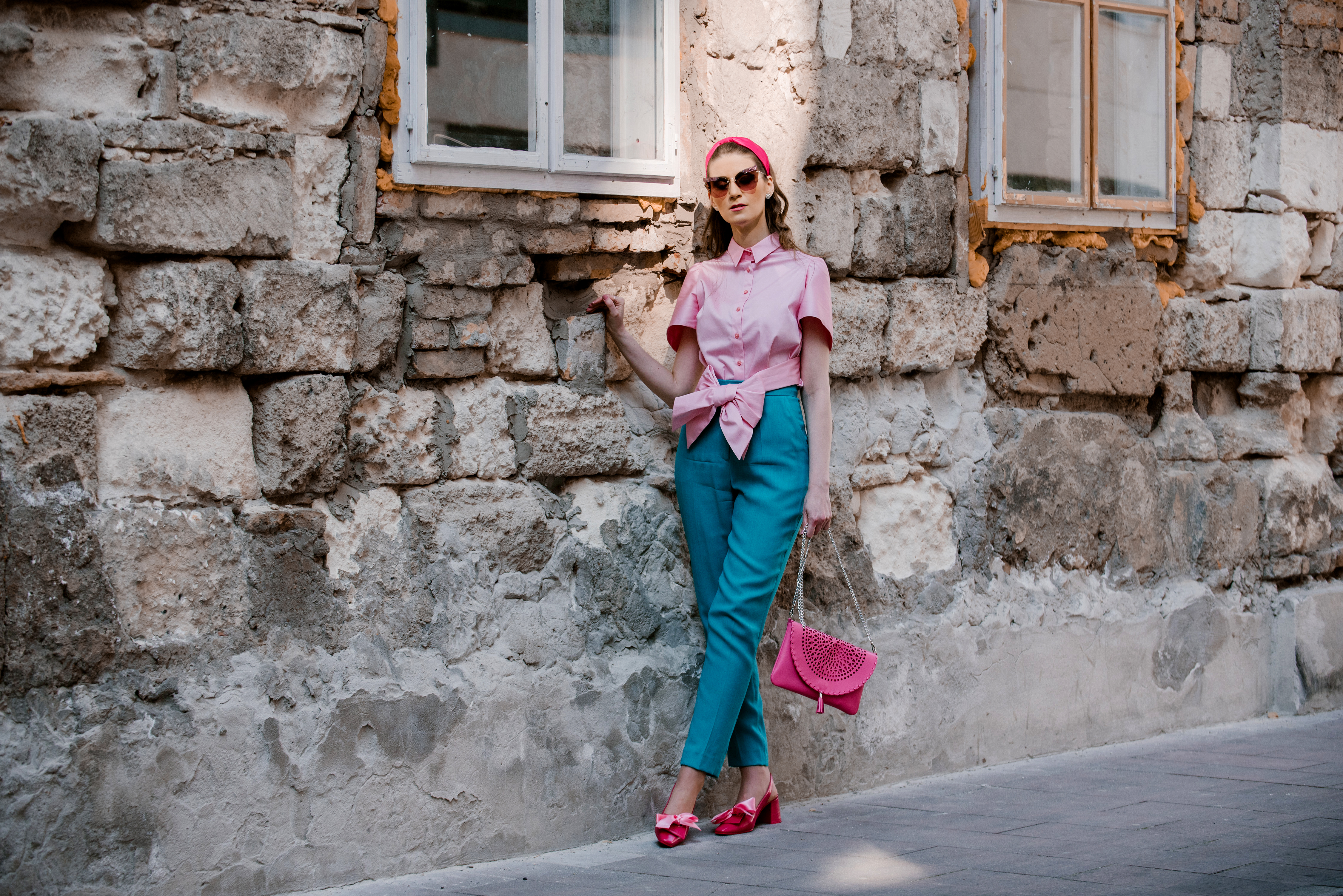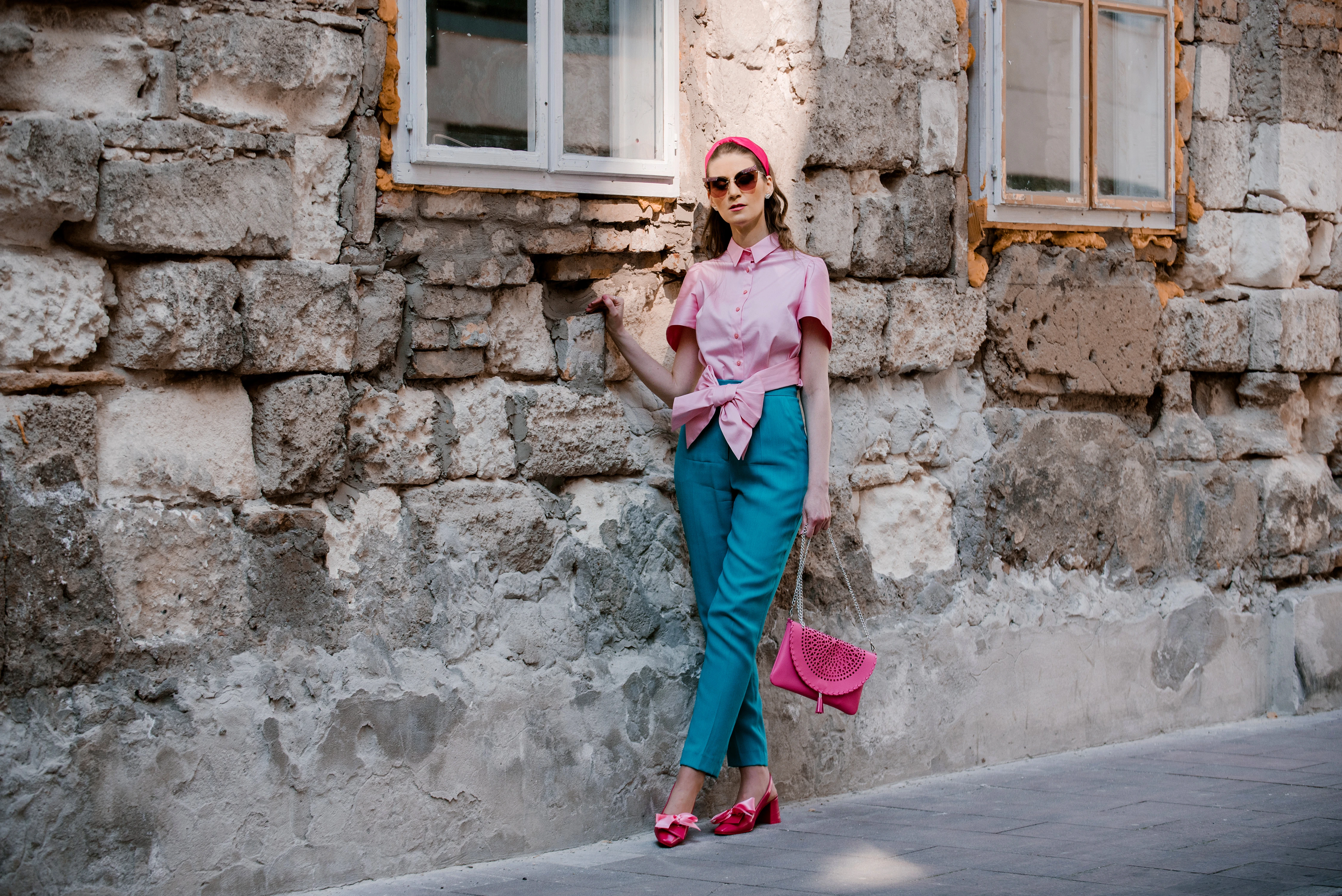 Talán elsőre olyan mintha a hét első két napja stílusban összekeveredett volna rajtam. A nyilatkozatdarabok és a masnik előkerültek, de az utóbbi most egy teljesen más aspektusában. A mai kicsit retro, kicsit játékos, de mondhatnám úgy is, hogy sokféle arcom van, és a mai épp a modern retro nő arcát mutatta meg egy baráti találkozóra sétálva. A cukorkaszíneiben ragyogó szettem nem kis feltűnést kelltett, de talán itt a masnira kötött blúzom és cipellő volt az, amire megfordultak az emberek. A megjelenésem legtöbb darabja külön-külön is szuper feltűnő, de így egyben egy igazi statement megjelenéssé alakult.