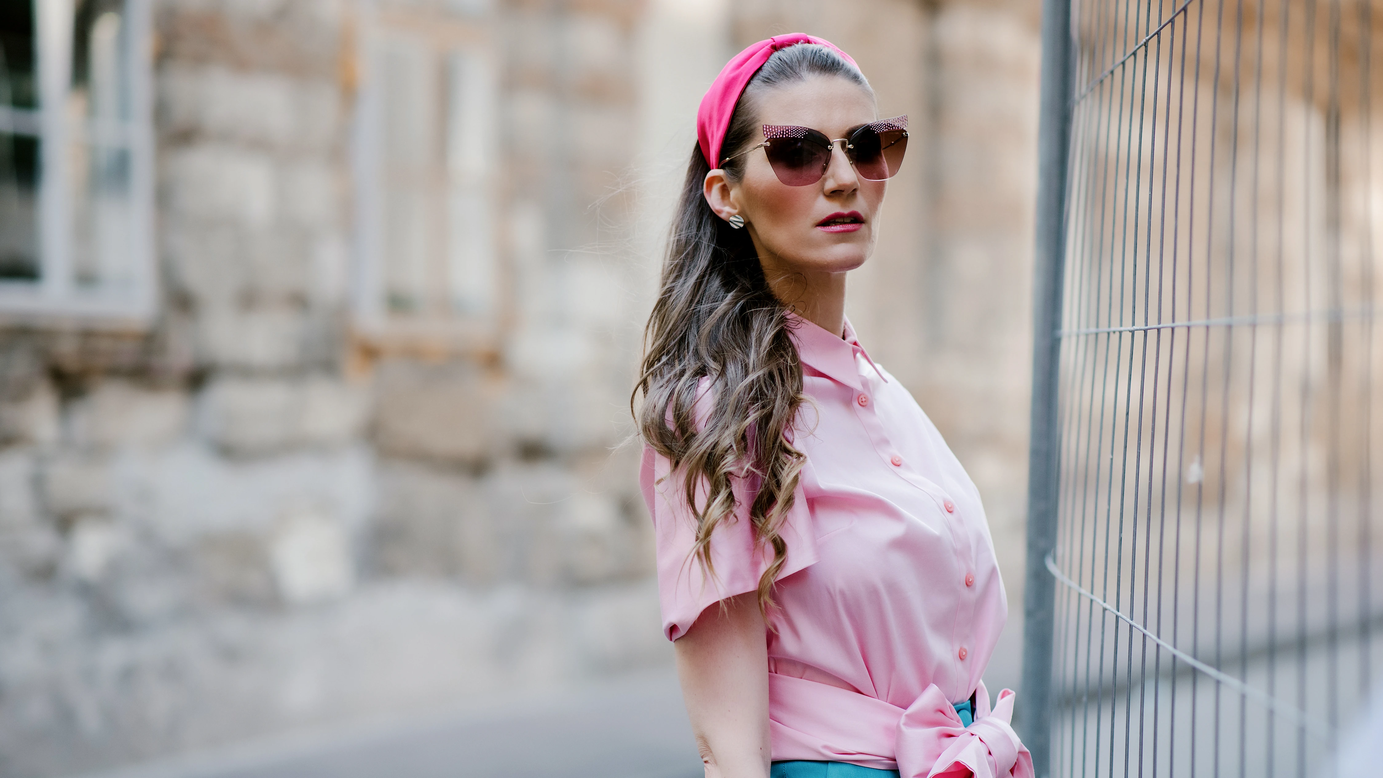 Ugyan szabály, hogy egy szettben, egy statement darab jelenjen meg, de az is, hogy ha már elég magabiztosnak érzed magad ebben a játékban, akkor több figyelemfelkeltő darab még tovább emelheti a stílus játékot. Összességében a fő szempont, hogy az elemek egyensúlyban legyenek egymással, így én bátran vettem fel egy Swarovski kövekkel díszített napszemüveget, a cipő színéhez illő hajpántot és táskát is a mai megjelenésemhez. Az ékszerek tekintetében ma ismét a visszafogottabb ezüst ékszereket választottam.