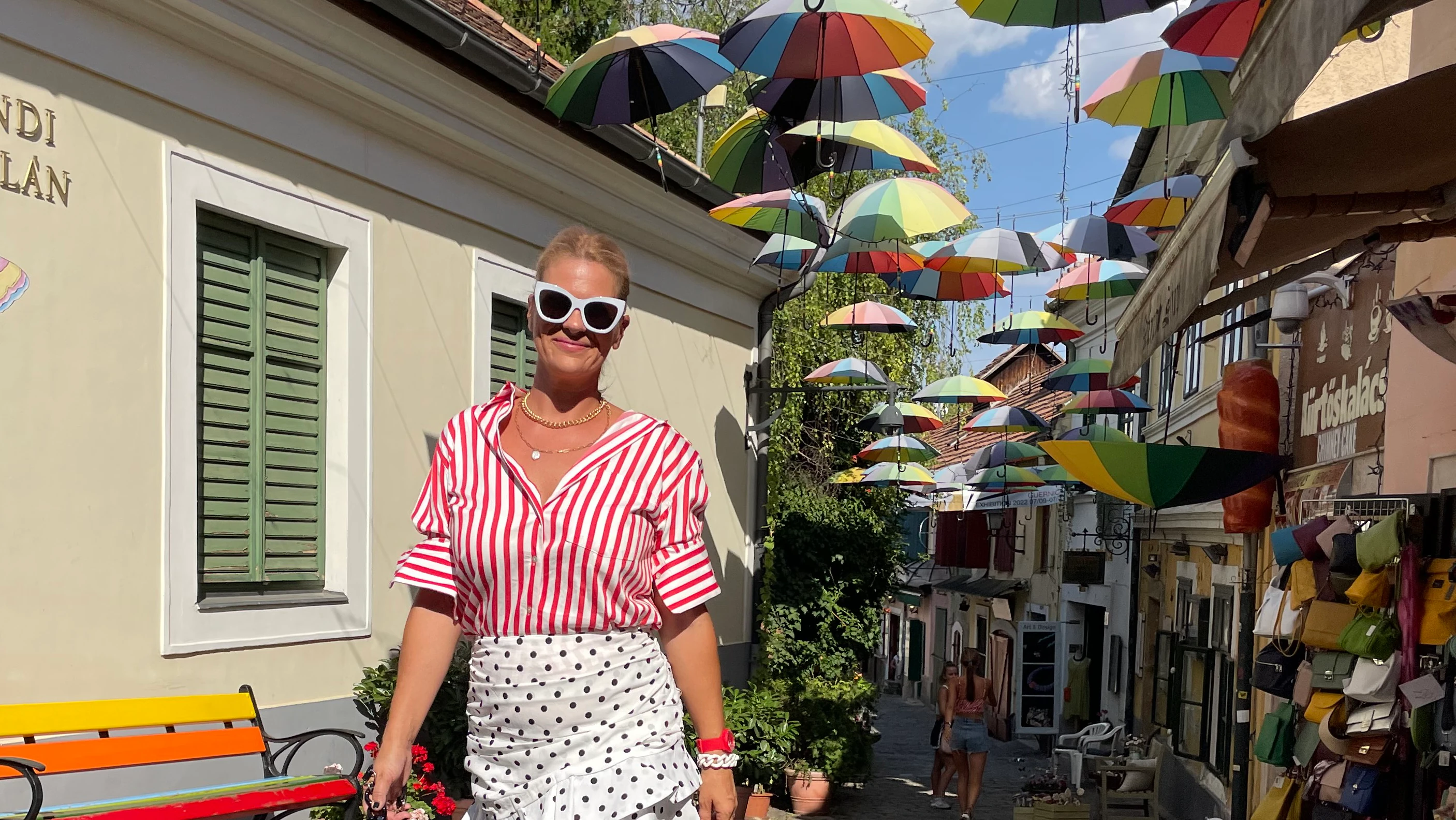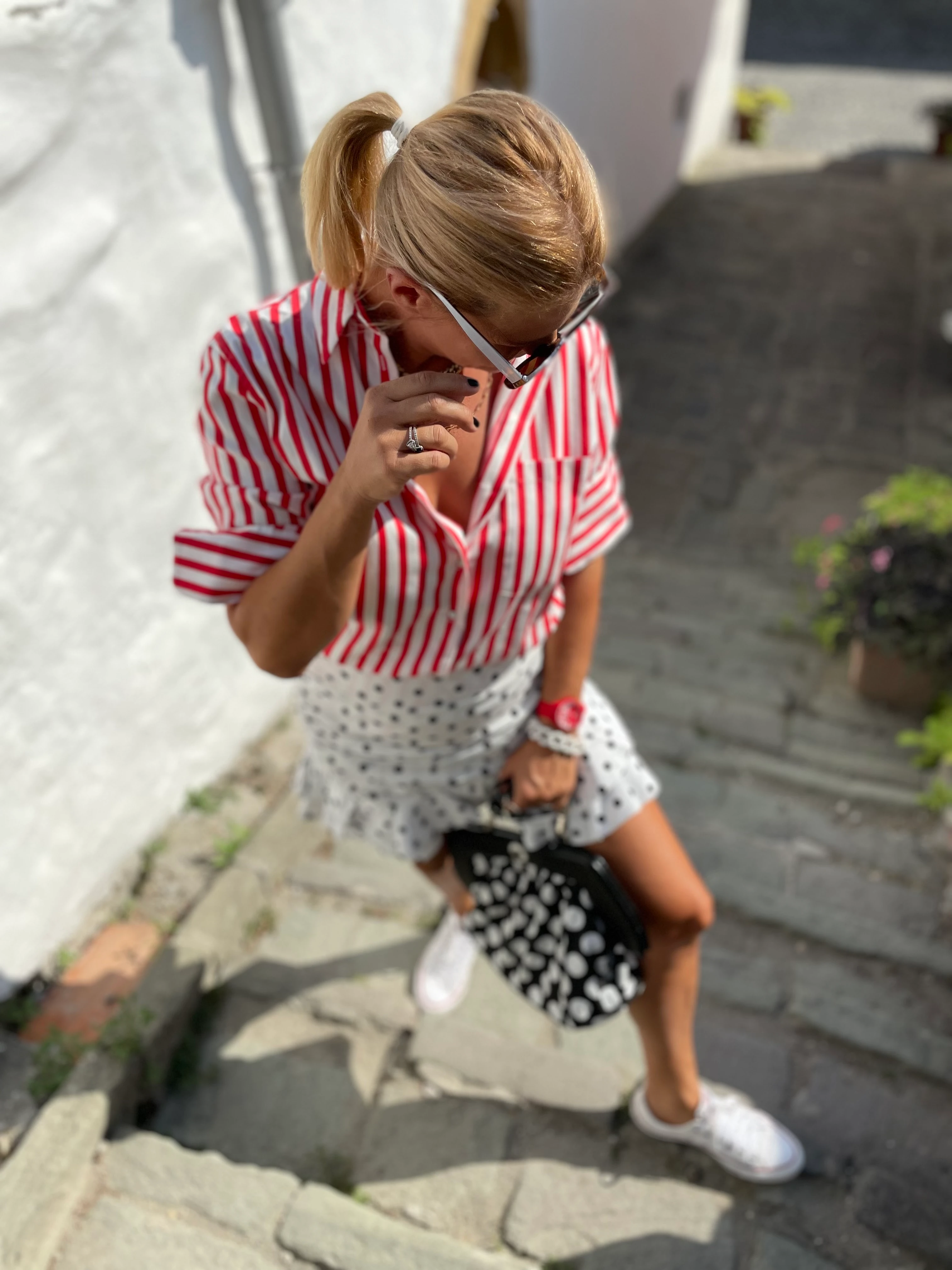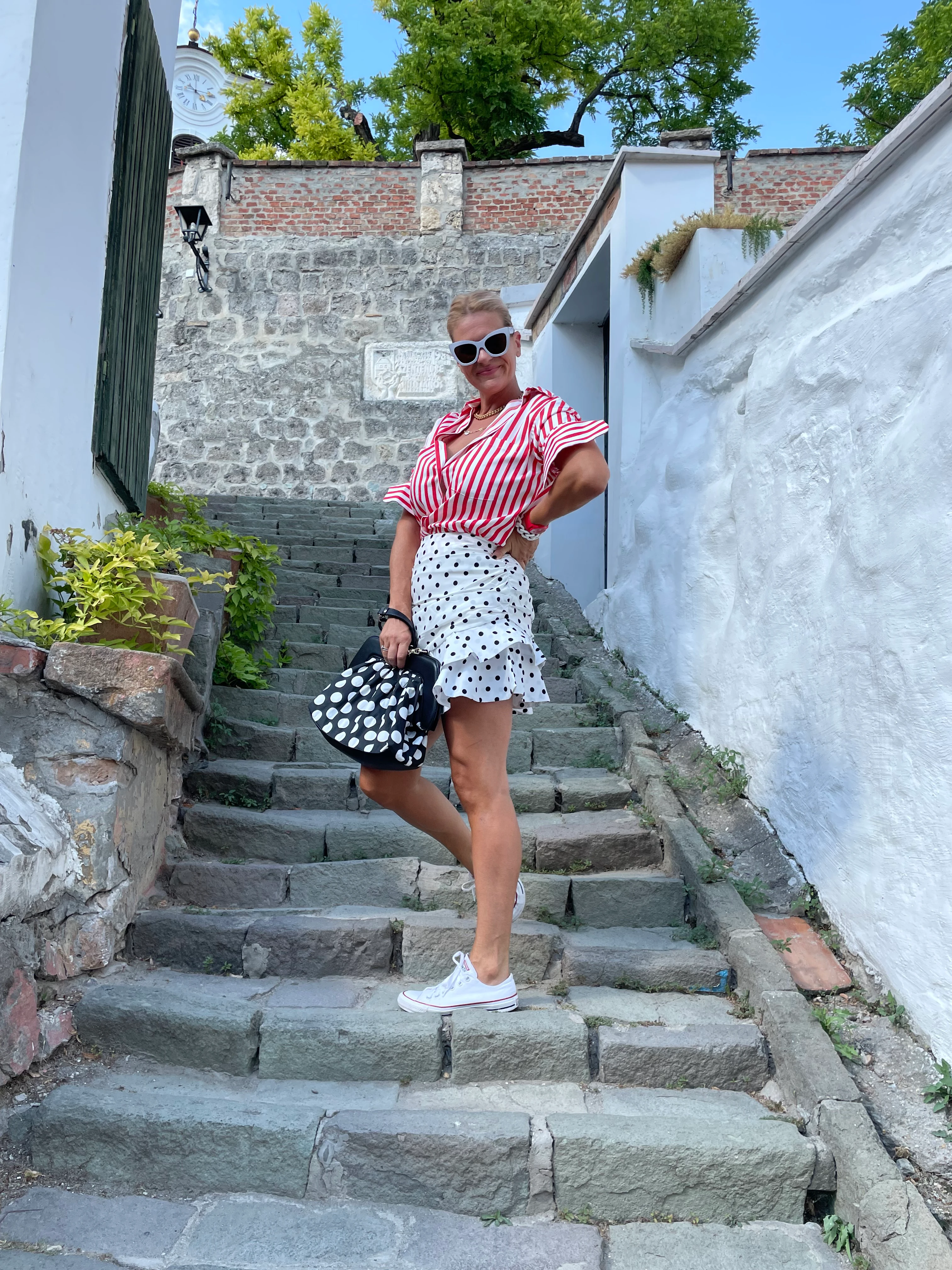Tudom, hogy kézenfekvő lenne egy fehér vagy fekete felső a szoknyához, de ha van hozzá kedvetek akkor bátran lépjetek ki a komfort zónából. Mi bajunk lehet?