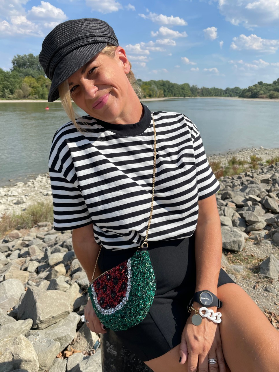 Azoknak, akik követnek Instagramon nem lesz meglepetés, hogy egy csíkos szettet is mutatok. A csíkos örök kedvencem. Nőies mégis vagány. Nagyon ritkán hordok feketét, de a fekete-fehér csíkos összeállításokat egyenes imádom. Póló, pulcsi, ruha minden jöhet.