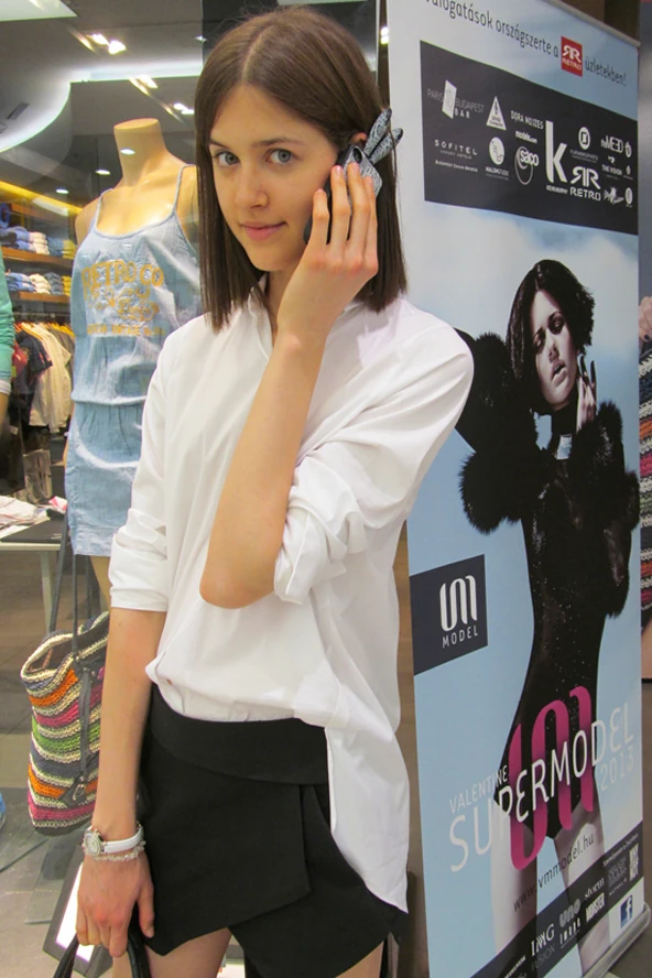 A mai napon tart válogatást az ügynökségem(@VM) a Supermodel versenyükre (amit négy éve én nyertem), és én is segítek nekik megtalálni a legújabb modellreménységeket. A klasszikusság és az egyszerűség jellemzi a stílusomat, így a mai viseletemet is. Mára egy fehér inget (Zara) választottam és egy fekete nadrág-szoknyát (Zara). A kiegészítőket szintén ez a két alapszín uralja. A fehér-fekete táskát (nővéremé) és a fekete balerina cipőt (Jaeger, London) azért szeretem együtt hordani, mert ugyanolyan bőrből készültek. Ami mindig velem van a telefonom és tokom hozza amit BCBG show után kaptam a tervezőtől. A fehér óra (DKNY,London) és a kristályos karkötő (New Yorkból) igazán kedves a számomra, ez a két ékszer nagyon jól tükrözi a személyiségemet, a stílusomat, mindig az outfitem részét képezi, legyen szó utazásról, fotózásról, iskoláról, focimeccsről vagy bármilyen eseményről.