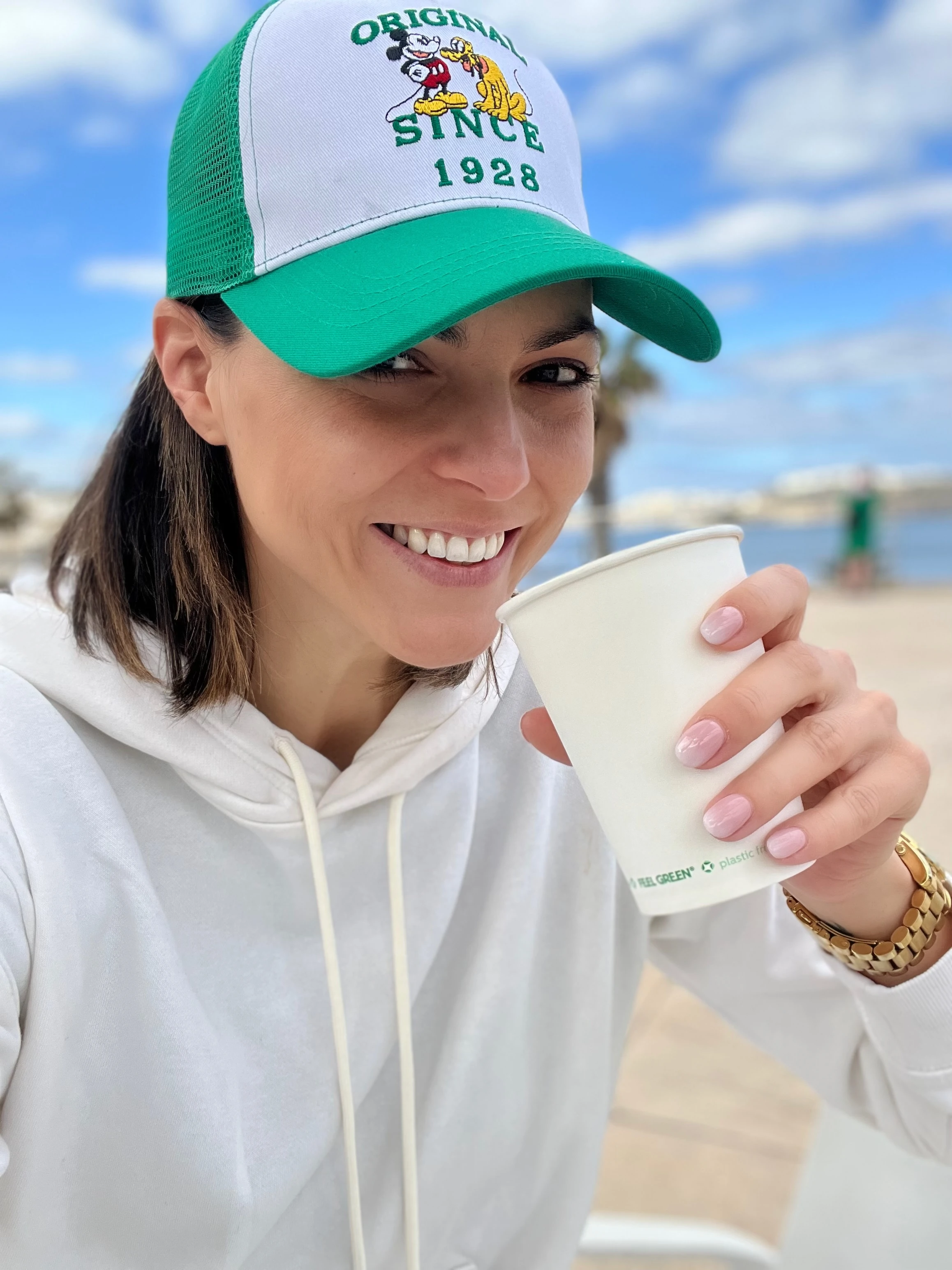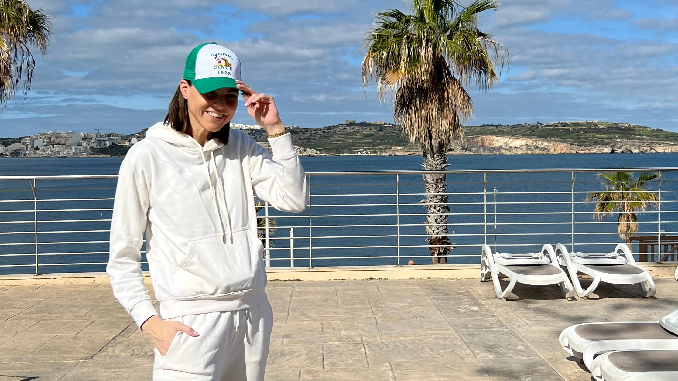 „Hirtelen ötlettől vezérelve úgy döntöttem, kell egy kis kikapcsolódás, hiszen amikor adásban vagyok, akkor azokon a napokon 4.30-kor kelek, és 5-kor már indulok is a stúdióba, hogy reggel időben tudjam köszönteni a nézőket. Ez egy elég lendületes, aktív, ám némiképp fárasztó hét, így most vágytam rá, hogy a kislányommal közösen valahol megpihenjek. Zárójelben jegyzem meg: nem, a gyerekkel nyaralás még pár évig nem lesz pihentető, de a környezetváltozás sokat javít a hangulaton. Évek óta állandó elvem: repülni csakis kényelmesen! Egy hosszú repülőút, a várakozás, az egyhelyben ücsörgés csak úgy tud komfortos lenni, ha közben nem feszengek a ruhában, nem szorít, nem vág be, laza, de vagány. 2020 után szerintem mindenkinek lapul a szekrényében egy arra érdemes melegítő szett, ami jól is néz ki, divatos, és nem leharcolt. Ehhez felkaptam a már említett baseball sapkámat, ami megfelel az egyéniségemnek: a múlt hónapban tettem szert erre a mókás Mickey egeres darabra, méghozzá a bécsi Primarkban. Ezt azért érzem fontosnak megjegyezni, mert állítólag hamarosan hozzánk is megérkezik mindenki kedvenc olcsó boltja, ahol például ilyen kincsekre lehet lelni. Egy jogginghoz alap a kényelmes edzőcipő, nekem az aktuális kedvencem a Skechers. Szerintem az elmúlt évben ez a márka főnix madárként ébredt fel hamvaiból, nagyon jó fazonokkal és színekkel apellál, a kényelem pedig alap, úgyhogy a rajongója lettem! Azt valószínűleg ti is látjátok, hogy nagyon fáradt vagyok a képen, ami nem véletlen, a gépünk reggel 6-kor indult, szóval hajnali 3-kor már ébren voltunk. Nézzétek el nekem, ígérem a héten lesz még jobb is. Egyébként pedig az bodypositivity korát éljük, ahol az önelfogadás és a valóság vállalása alapfeltétel, hát én bátran megmutatom nektek! Szép napot Csajok, holnap találkozunk!”