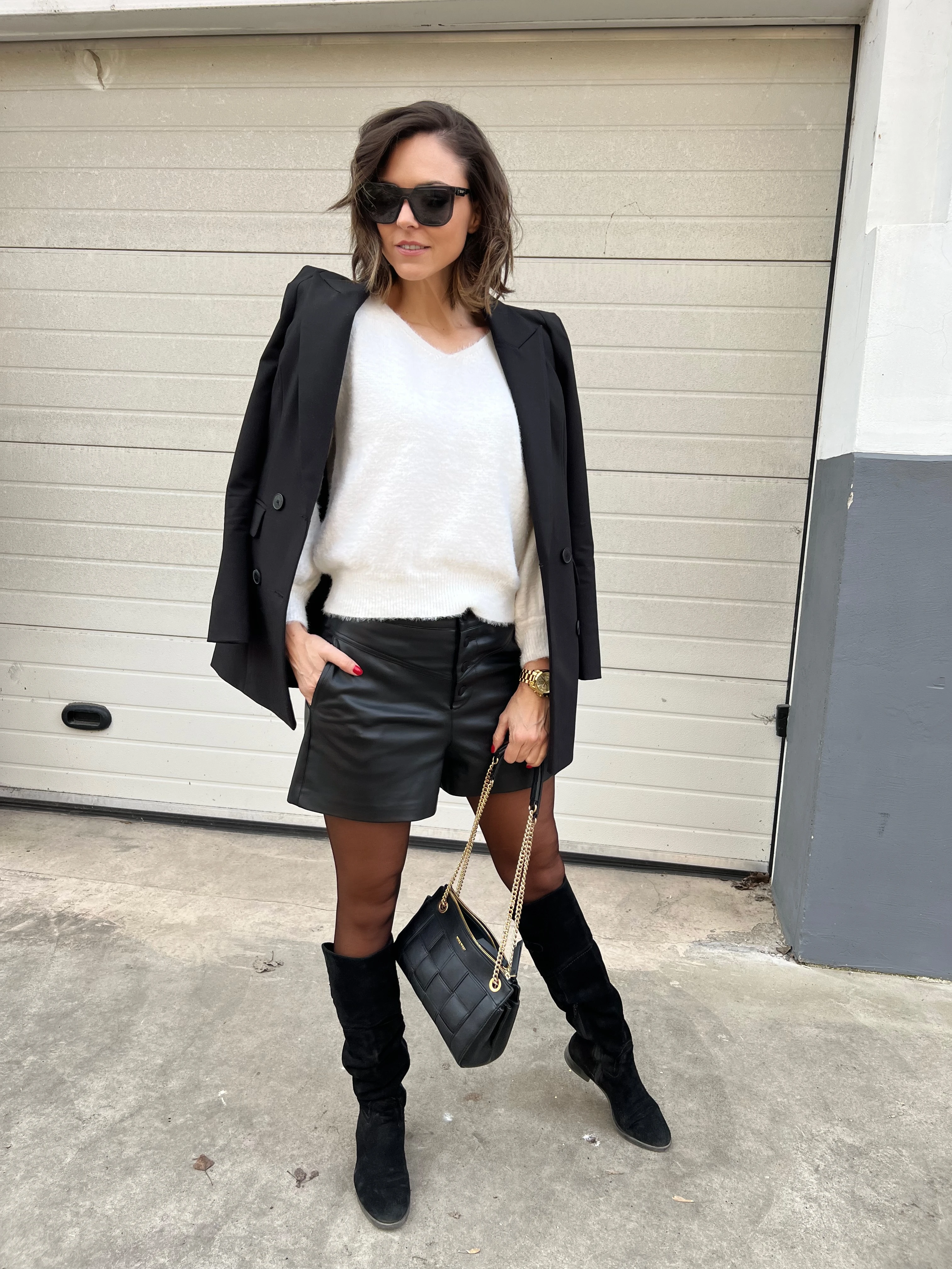 „Újra itthon! Ez tényleg csak egy rövid kiruccanás volt, vasárnap mentünk, szerdán pedig már Budapesten landolt a gépünk. Itthon még néhány fokkal hűvösebb van, ezért bőven elbírom a csizmát, de hogy ne legyen nagyon szürreális a mai szettem, ezért már egy rövid sorttal kombinálom. Hát igen, színekben nem vagyok annyira jó, többnyire a biztos feketére szavazok, ezért ezen a téren még van mit fejlődnöm. Amikor a szekrényemben keresgélek, valahogy automatikusan a fekete után nyúlok, közben viszont folyamatosan trenírozom magam a színesebb összeállításokra. Érdekes, hogy a kiegészítőkhöz valamiért nem értek. Tiniként volt egy időszakom, amikor minden ujjamra jutott egy gyűrű, de szerencsére ez nem tartott sokáig. Azóta átestem a ló másik oldalára, igazából nemes egyszerűséggel egy karórát szoktam állandó jelleggel viselni, és csak különleges alkalmakkor veszek például fülbevalót is. Én alapvetően a letisztult, egyszerű megoldások híve vagyok, nem műfajom a túldíszített, csicsás kivitel. Mivel magas vagyok, így is eléggé vonzom a tekinteteteket, ami néha zavarba ejtő tud lenni, ezért a visszafogottság rám kifejezetten jellemző.