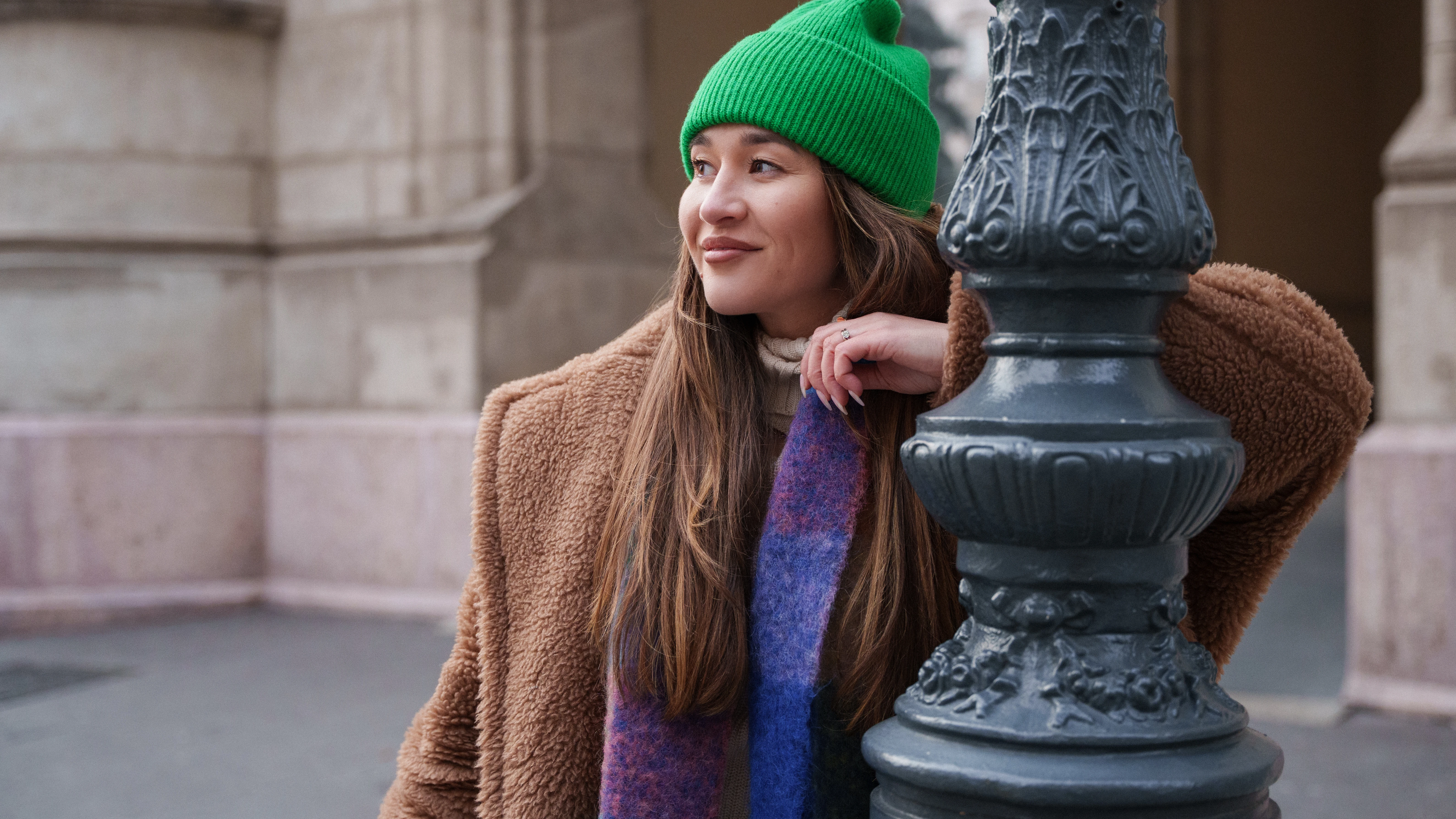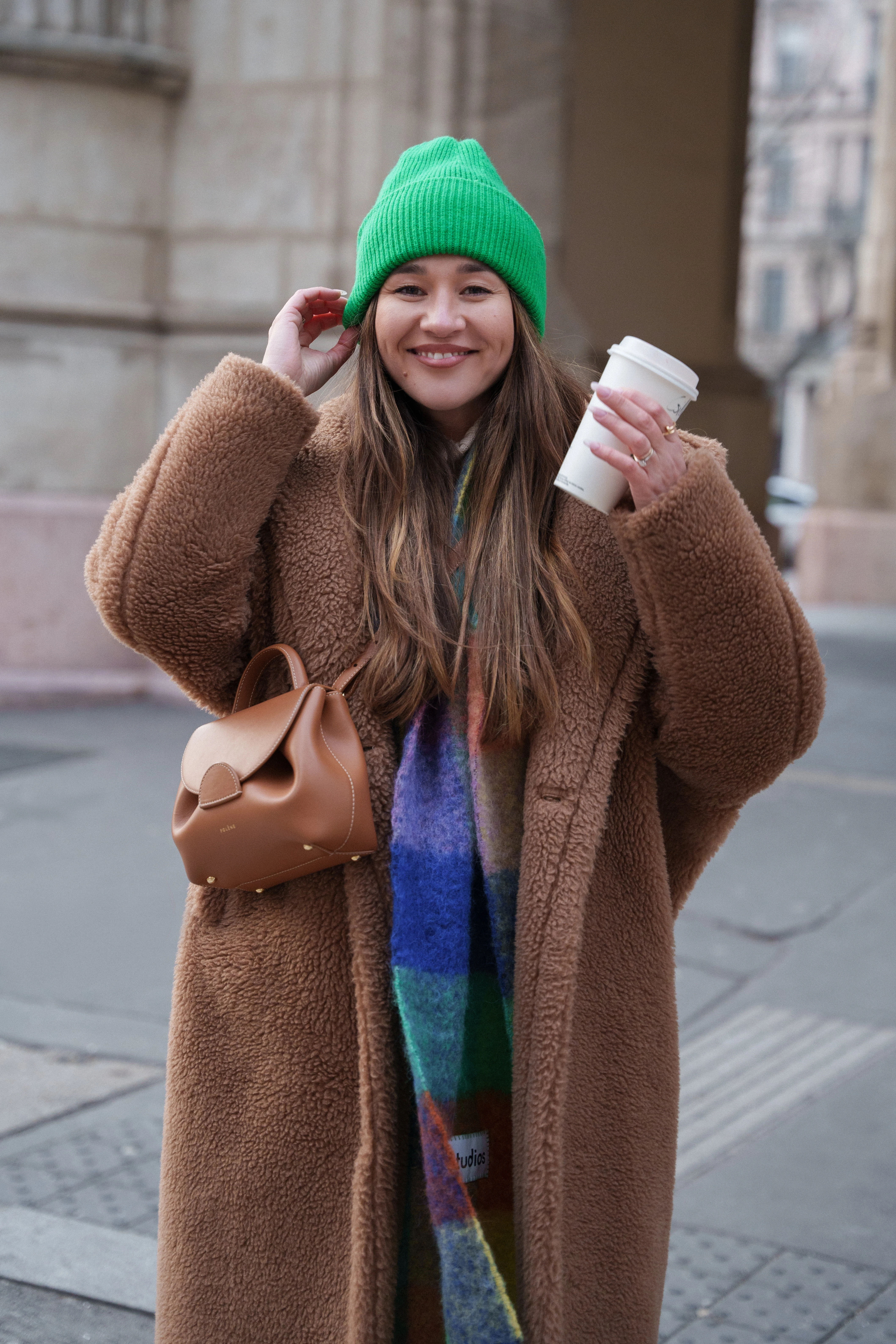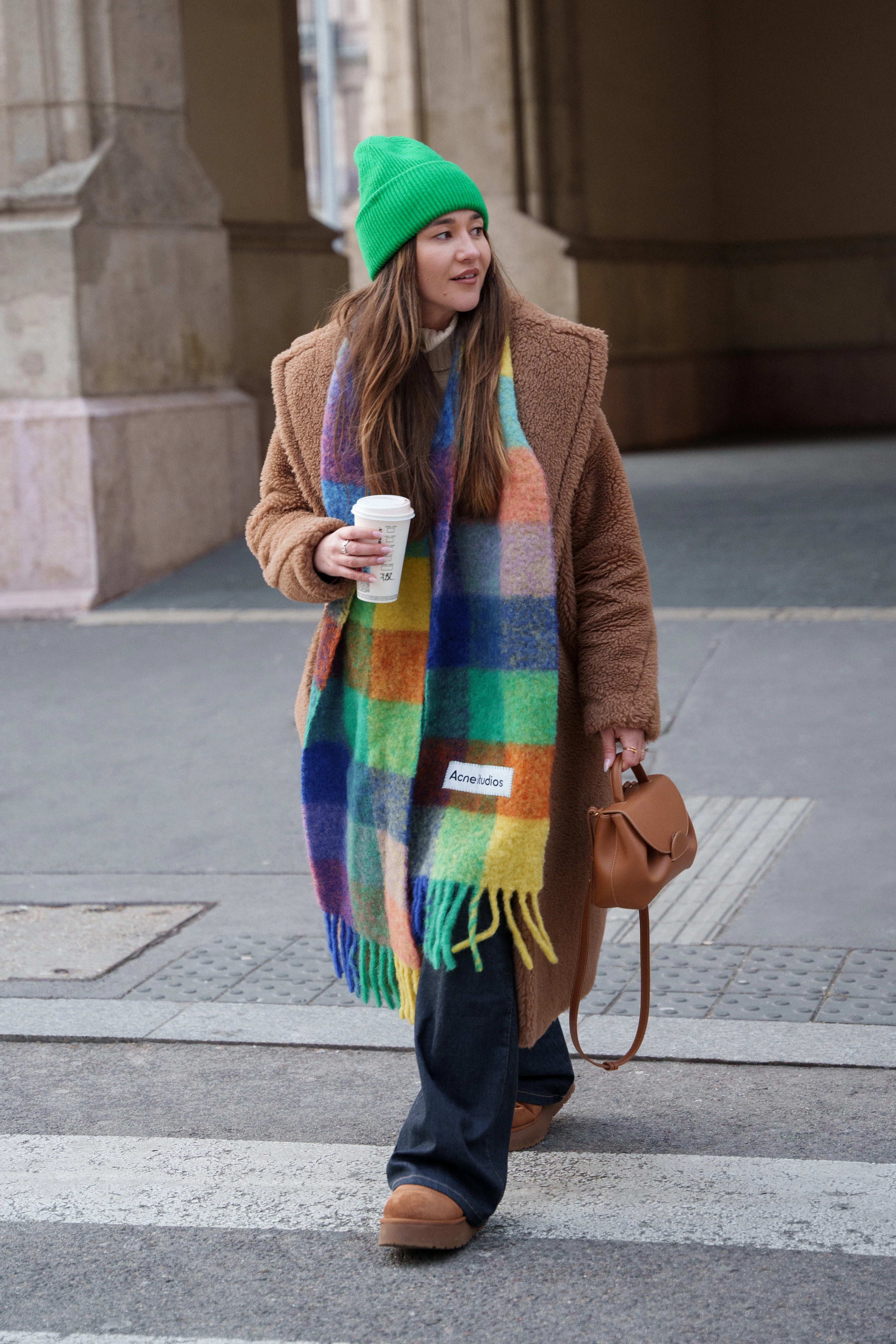 A szettem alapvetően ma is basic: bő szárú farmer és a kedvenc platformos Ugg csizmám, viszont mindig keresem, hogy mivel lehet extrázni, így most a sapka és sál lett figyelemfelkeltő. A designer darabjaim jó része magyar, ezzel is támogatva a hazai tervezőket, de a kisebb vagy feltörekvő külföldi tervezőkre is szeretek lecsapni. Azt gondolom, ha törekedsz a fast fashion darabjaid helyett időtállóbb darabok beszerzésére, már sokat tettél a fenntarthatóbb jövőért.