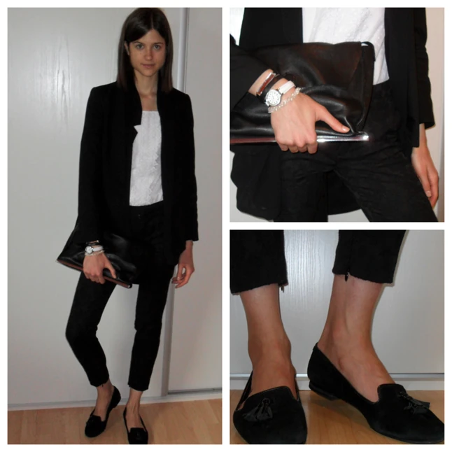 Ma sajnos nagyon rossz idő van Debrecenben, ami a hangulatomat is meghatározza, így a nap nagyobb részét tanulással töltöttem a szobámba bezárkózva. Délután pedig bemegyek nővéremmel a belvárosba néhány dolgot elintézni, azt terveztem,hogy a fotót Debrecen gyönyörű főterén készítsük el, de szakad az eső, ezért nővérem szobáját választottam háttérnek. Ma is egy fekete-fehér filmből léptem elő:) Csipke mintájú a fekete nadrágom (Zara) és a fehér felsőm (Zara) is. A fekete lenge felsőt- amit Szegedi Kata tervezett- egyszerűen imádom, minden outfitemhez fel tudnám venni. Efelett pedig egy zakót viselek (Zara). Az "aladdinos" cipőmet New Yorkban vásároltam (Steve Madden) és szinte minden évszakban viselem, ez az egyik kedvencem.