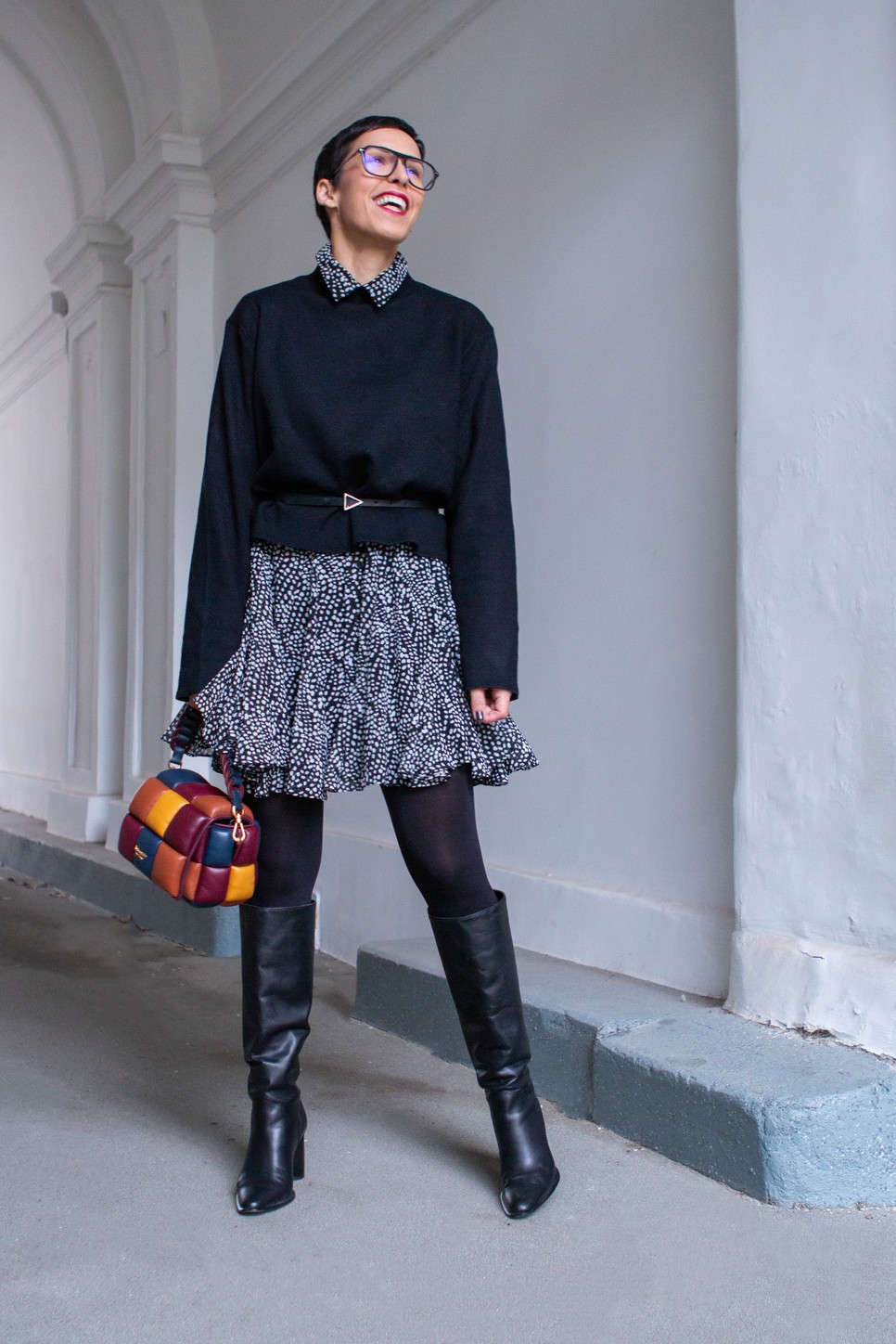 Ha vendégem van, mindig feketében vagyok. Ilyenkor ő van a középpontban és a színkendőzések során a fekete szettemben kvázi a háttérben tudok maradni! Mint ahogy hétfőn, most is egy karakteresebb kiegészítővel dobom fel a feketeséget.