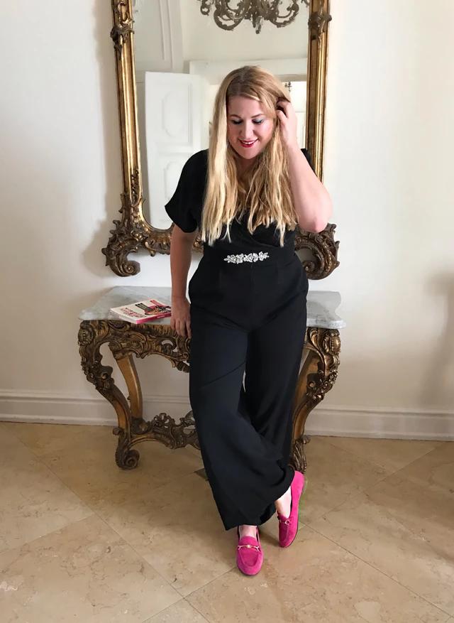 Overálimádó vagyok, jó pár darab sorakozik a gardróbomban. Ezt az elegánsabb, derékban kövekkel díszített klasszikus darabot nemrég szereztem be a StarShinerS-től, mert tudom, többször nyúlok majd érte, ha egy olyan alkalom lesz, amelyhez tökéletes választásnak bizonyul. Számomra nagyon fontos, hogy olyan ruhákat, táskákat, cipőket vásároljak, amelyek magas minőségűek és abszolút a stílusomat közvetítik. Ezt a darabot most épp az aktuális kedvenc loaferemmel vettem fel, de egy fekete tűsarkúval is el tudom képzelni.
