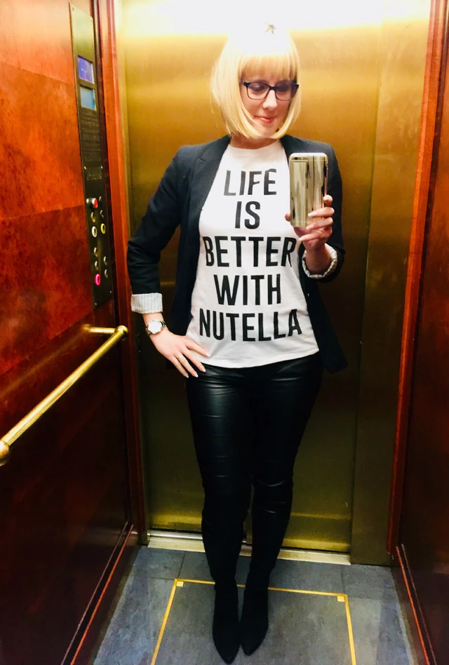 Amikor ma negyed ötkor csörgött az óra, nem kicsit sóhajtottam… Ez a leghosszabb napom a héten. Adás után megyek a 168 Óra szerkesztőségébe, ahol a mai értekezleten kitaláljuk a jövő heti címlapot, megbeszéljük, várhatóan milyen cikkek kerülnek a lapba. Utána pedig újra autóba pattanok, visszavezetek a tévébe, ahol már az esti Egyenes Beszéd adást szerkesztjük, készülök a vendégekre – innen este fél tízre érek haza. A férjem már tudja, ilyenkor csak nyugalomra és egy pohár Chardonnay-ra vágyom. Csoda-e, hogy egy ilyen, 18 órás munkanapra kell némi vidámság? Márpedig a póló nem hazudik: "az élet jobb Nutellával". Ez alapigazság!