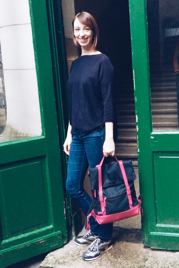 Már olyan régóta vágytam egy praktikus hátizsákra, és nemrég meg is kaptam. A színei jól jellemeznek engem: a pinket gyakran használom minden árnyalatában mert nagyon szeretem, viszont általában visszafogottabb színekkel alkalmazom. A táska bőrből és vászonból készült és gyakorlatileg miden nap viselem mert sokszor kell a laptopomat magammal cipelnem.