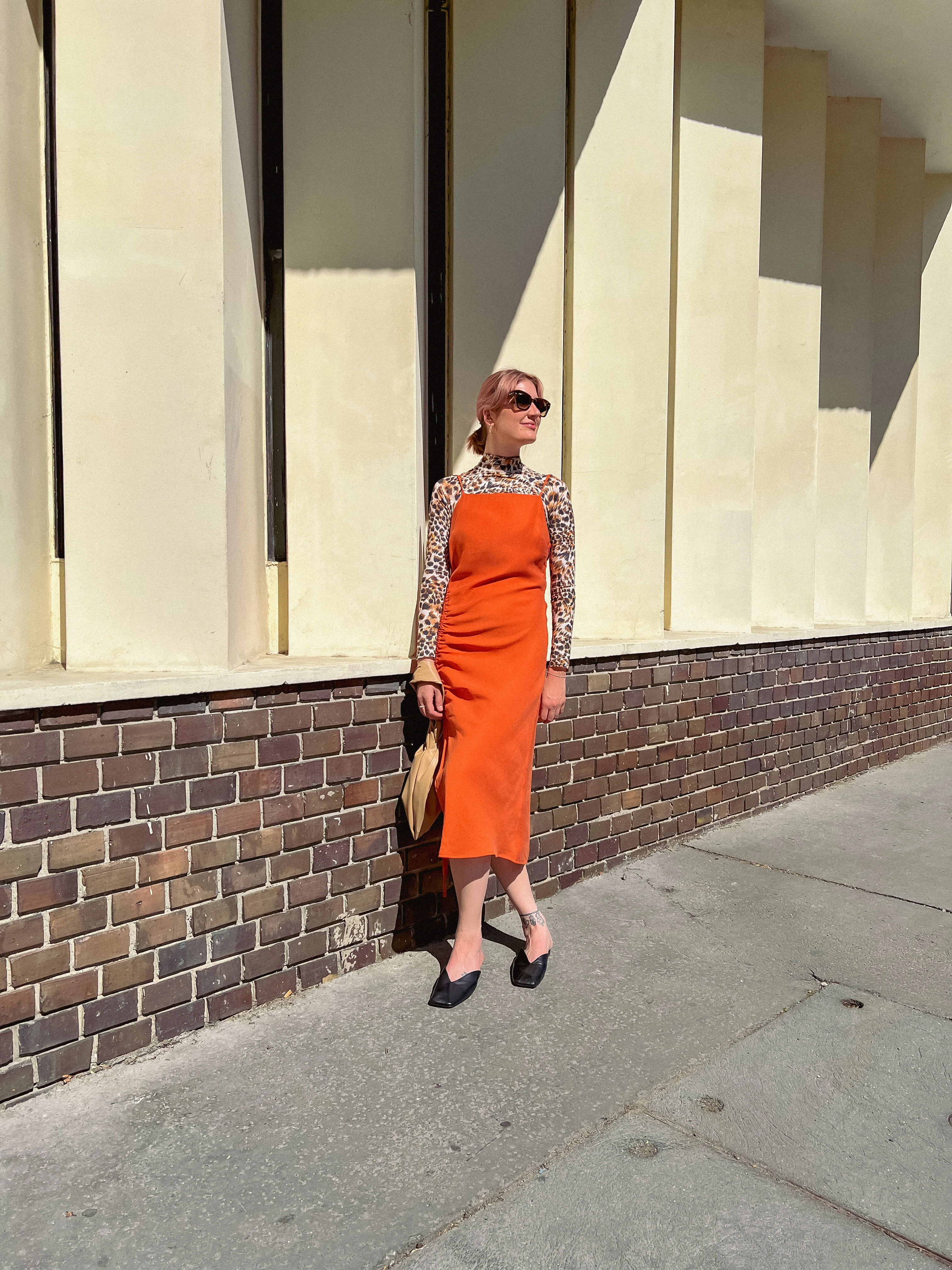 Hogy szabadabbnak érezzem magam aláöltöztem a nyári Reserved ruhámnak egy ocelot mintás Nanushka croptoppal, de megtartottam a tegnapi kényelmemet is a papucsommal, amiből bármikor kiléphetek és szaladgálhatok akár a meleg nyári betonon.