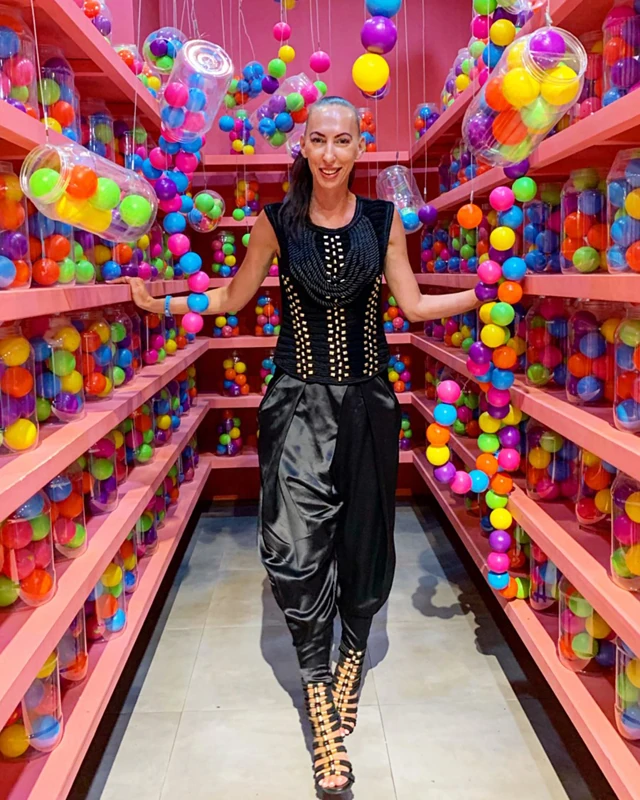 Esti program a barátokkal - édesség múzeum és vacsora. Valami egyedi és vagány szettet akartam viselni erre az alkalomra, így ezt a bő szabású selyem nadrágot választottam matching toppal és szandállal.