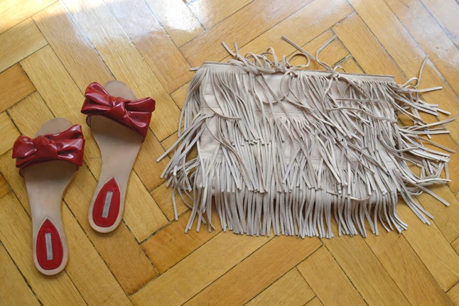 Hétfő mindig a hétvégén felgyűlt rohangálnivaló napja, így általában tornacipő-nap, de ma annyira gyönyörű idő van, hogy kivételt tettem. Papucsot alapvetően nem vennék, és nem is ajánlok utcára, de ez a piros masni szerintem tündéri, szeretem ezeket a Lolitás összeállításokat. A ruha pedig egy véletlen rossz helyen befordulás eredménye, megláttam a kirakatban 890Ft-ért, a valaha legjobban elköltött fél ebéd ára volt.`