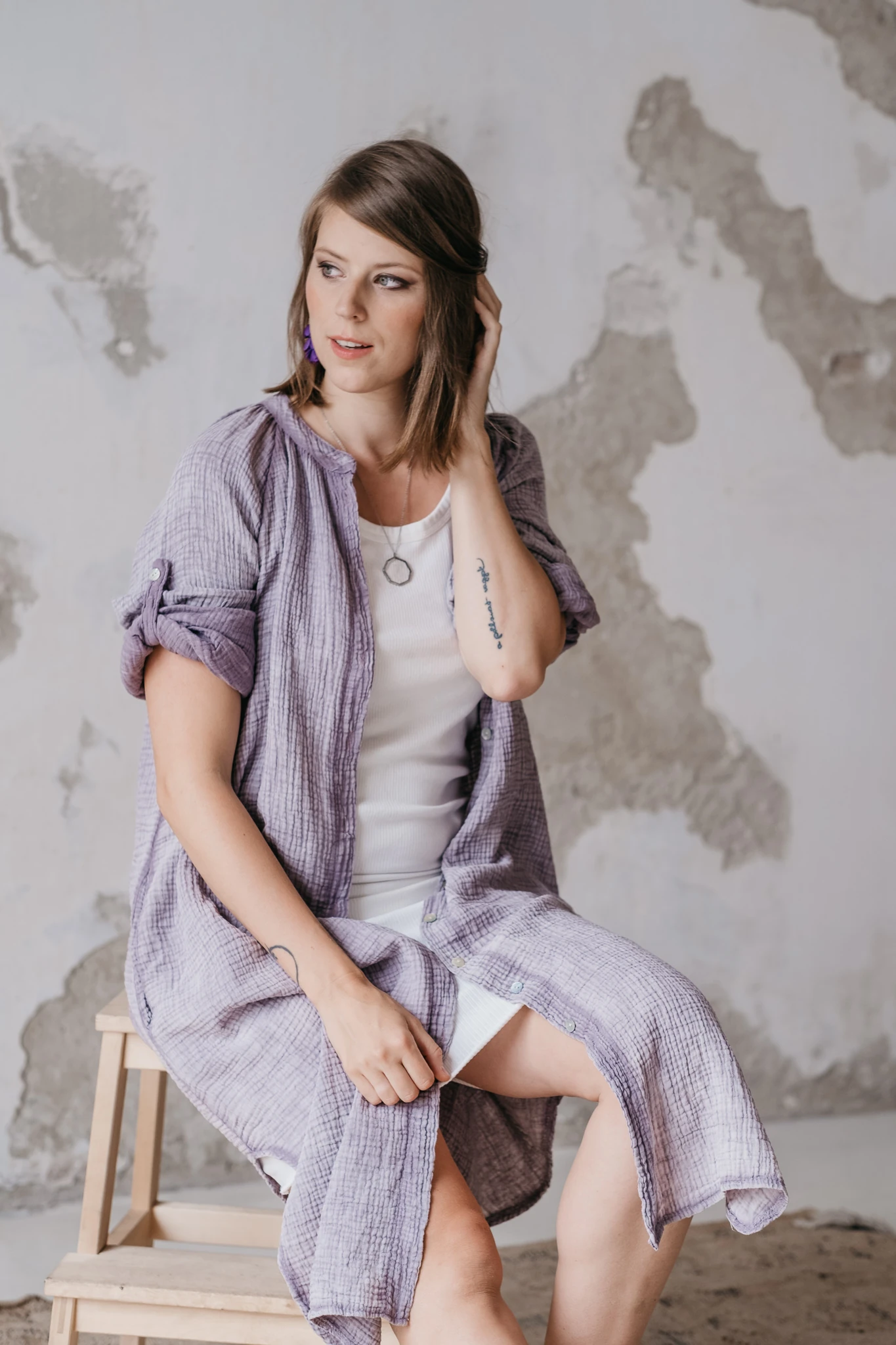 Régebben mindig féltem a lila színtől, de aztán rájöttem, hogy nagyon is szeretem, sőt jól is áll. Erről mindenképpen szeretnék majd egy színtanácsadáson is megbizonyosodni, hogy jól érzem, amit érzek. A természetes anyagú ruhák pedig egyre közelebb állnak hozzám, mert az érzékeny bőröm sokkal jobban viseli ezeket a darabokat.