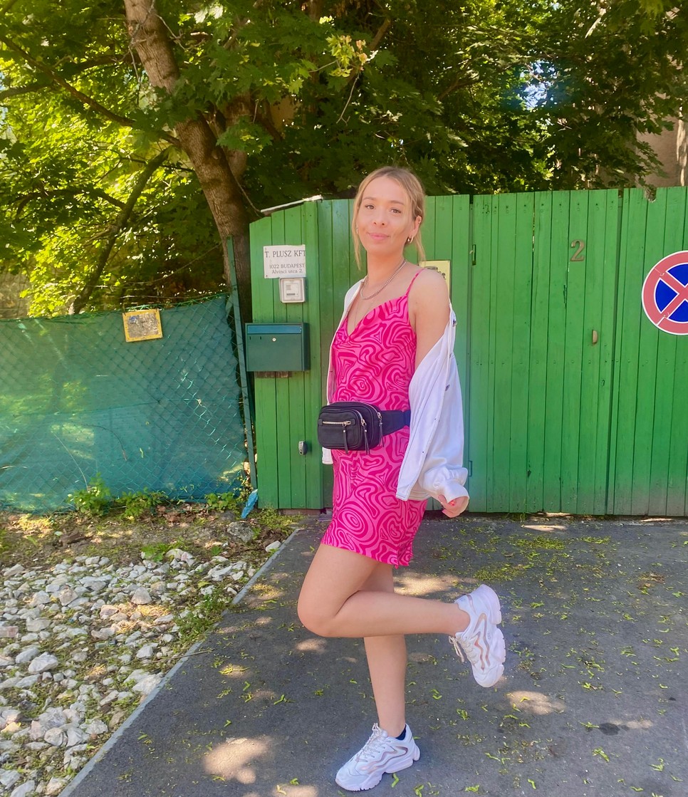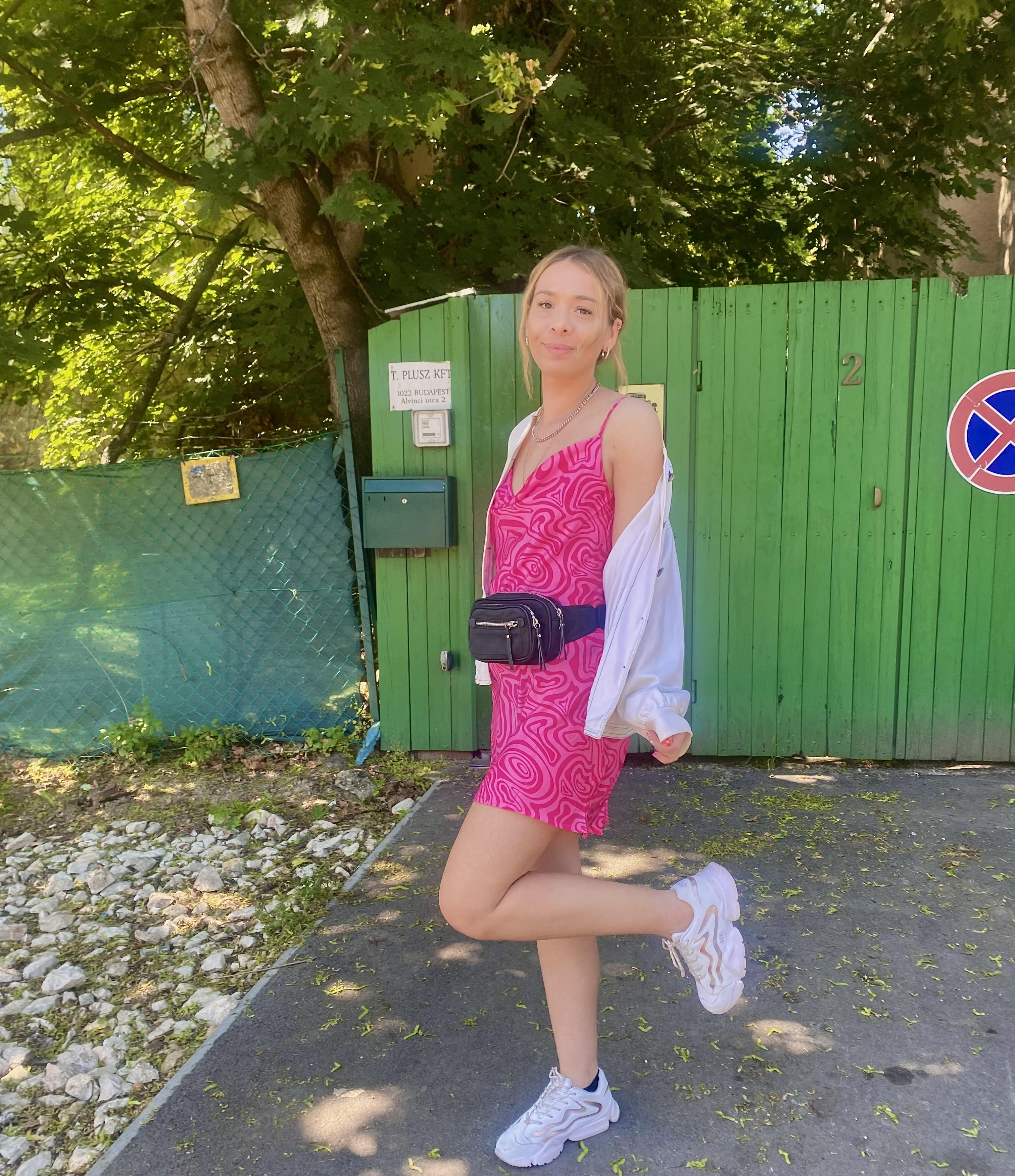 A ruhához egy Dorko sportcipőt és egy fekete övtáskát választottam, és mivel este ellátogatok egy koncertre is, ezért hoztam magammal egy fehér bomber dzsekit is, amit még a dédnagymamámtól örököltem és nagyon jól jön majd, ha hűvösebbre fordulna az időjárás.