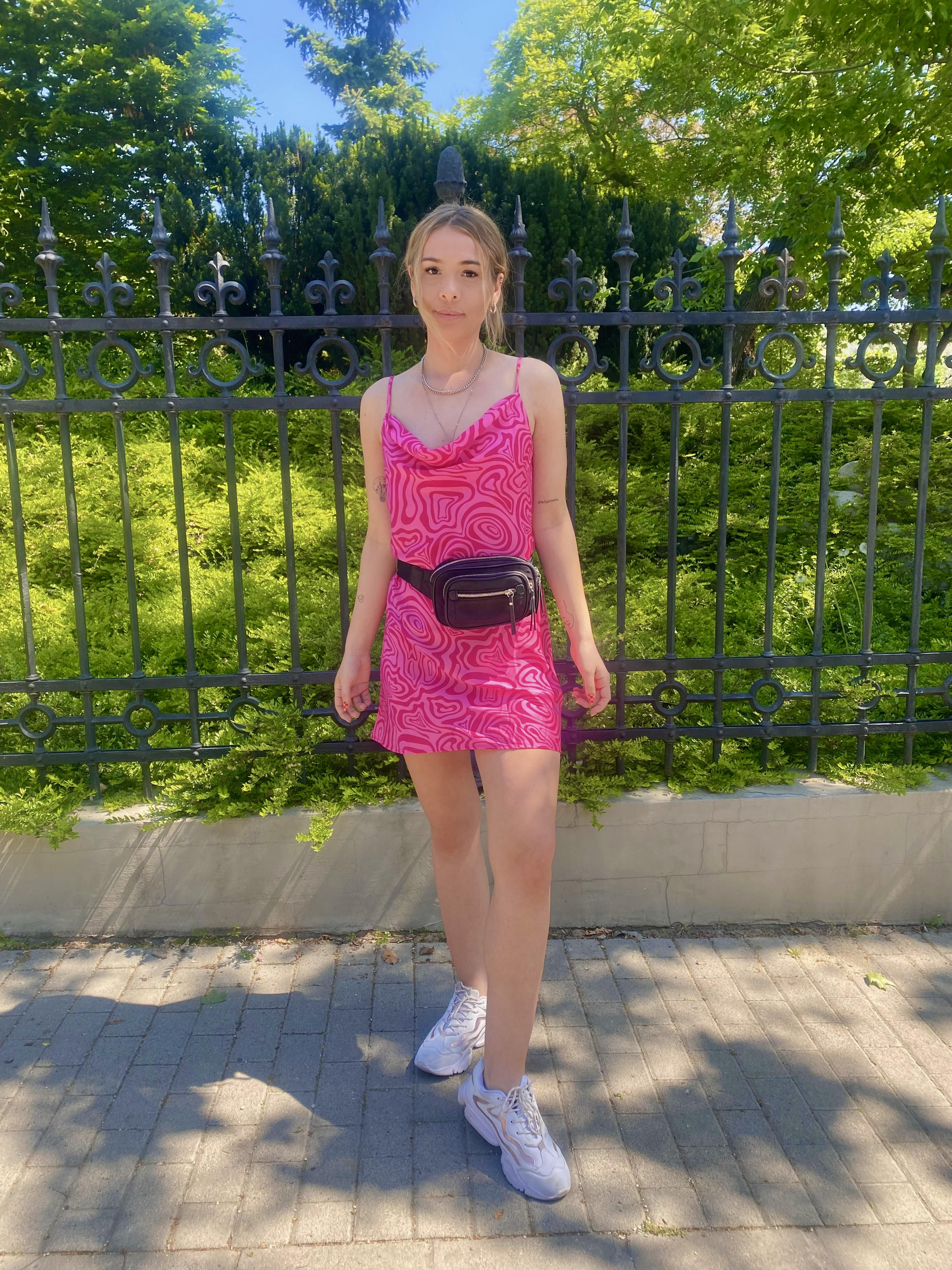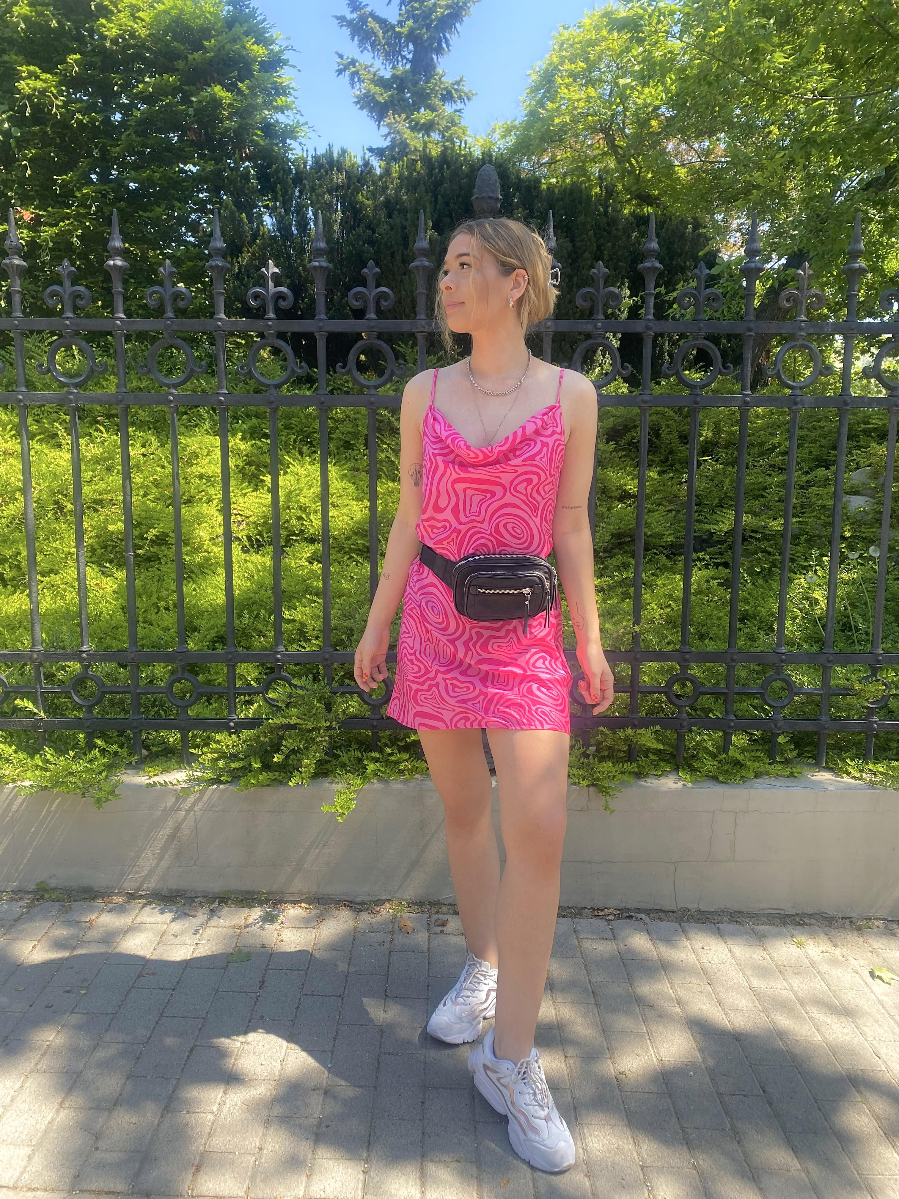 Ma van az év eddigi legmelegebb napja, így nagy örömmel avatom fel ezt a frissen beszerzett mini ruhát, aminek egyszerűen szerelmes vagyok a mintájába! Ismét a rózsaszín-piros színkombó köszön vissza amit tényleg nagyon imádok.