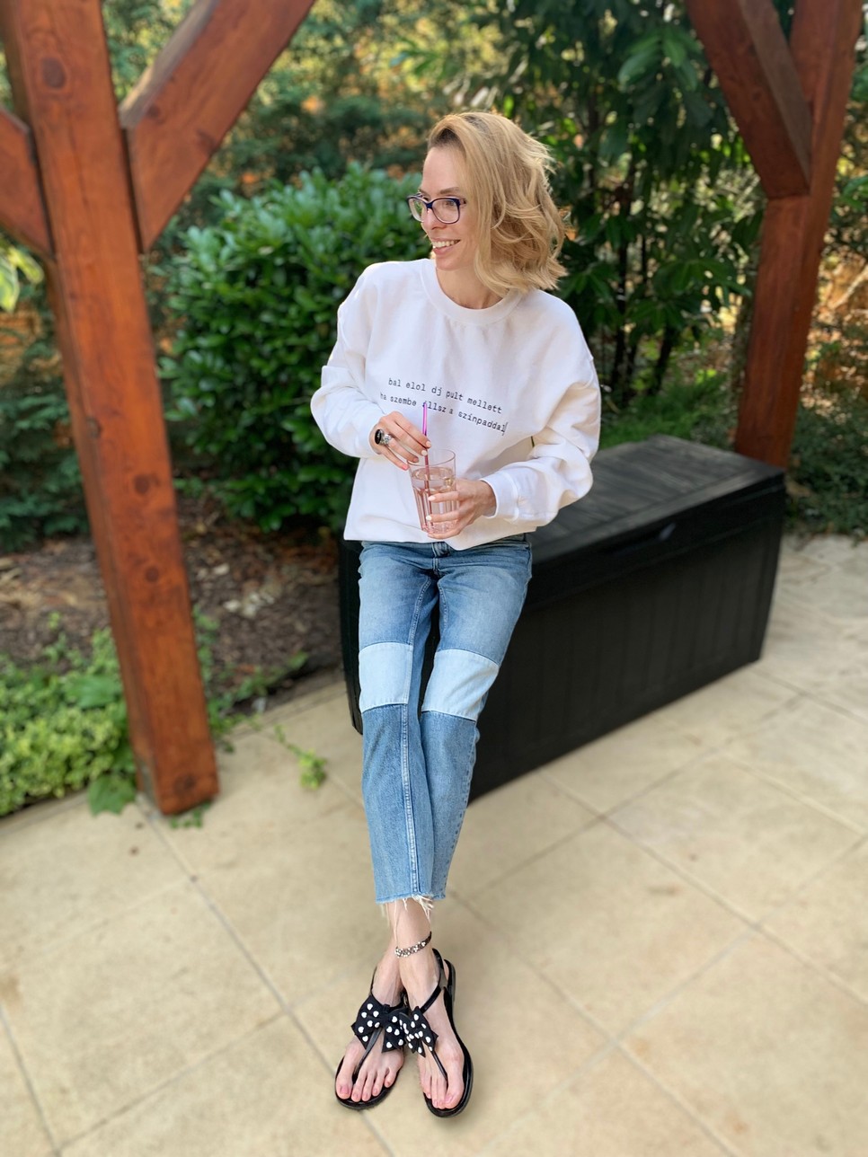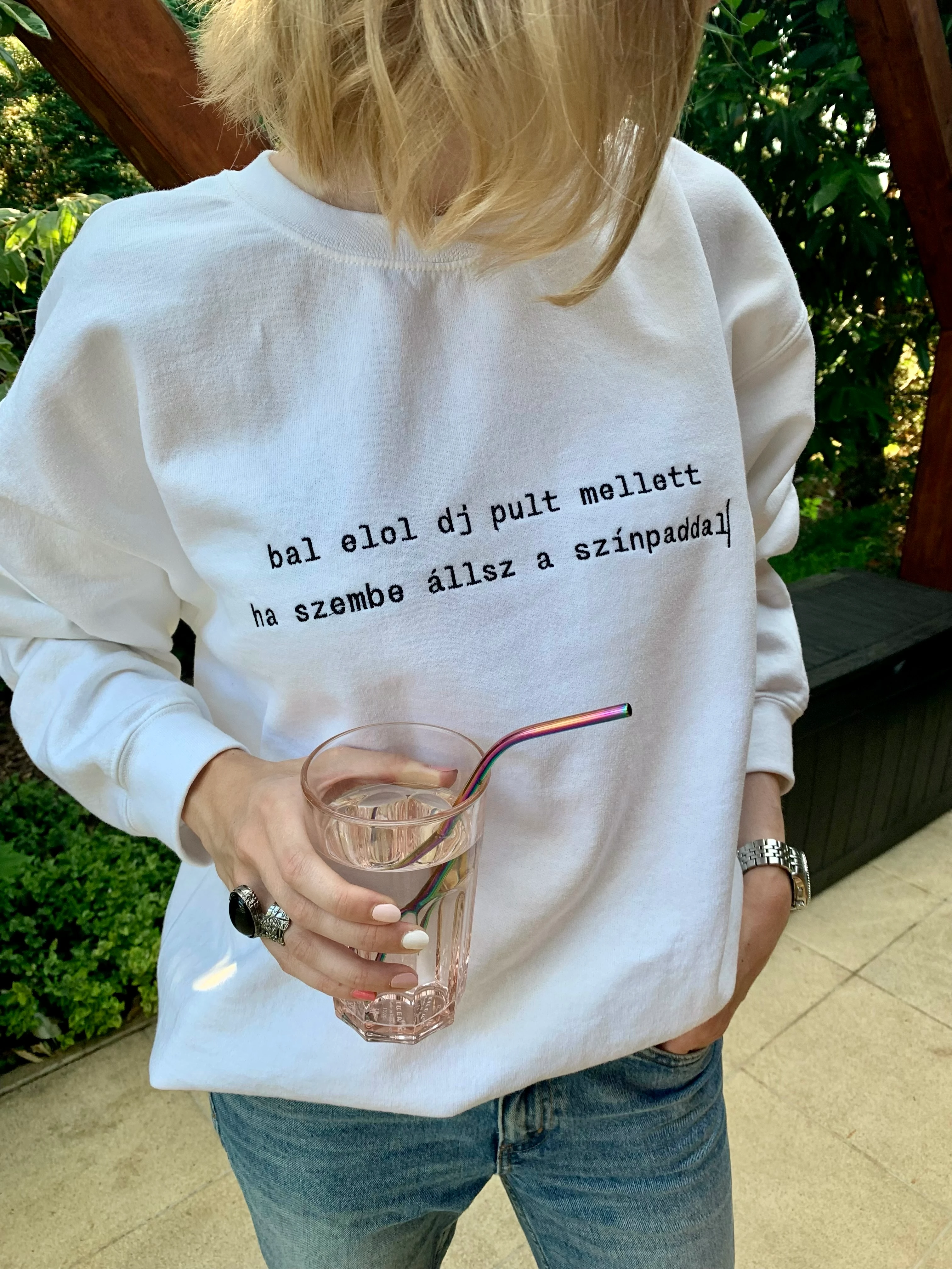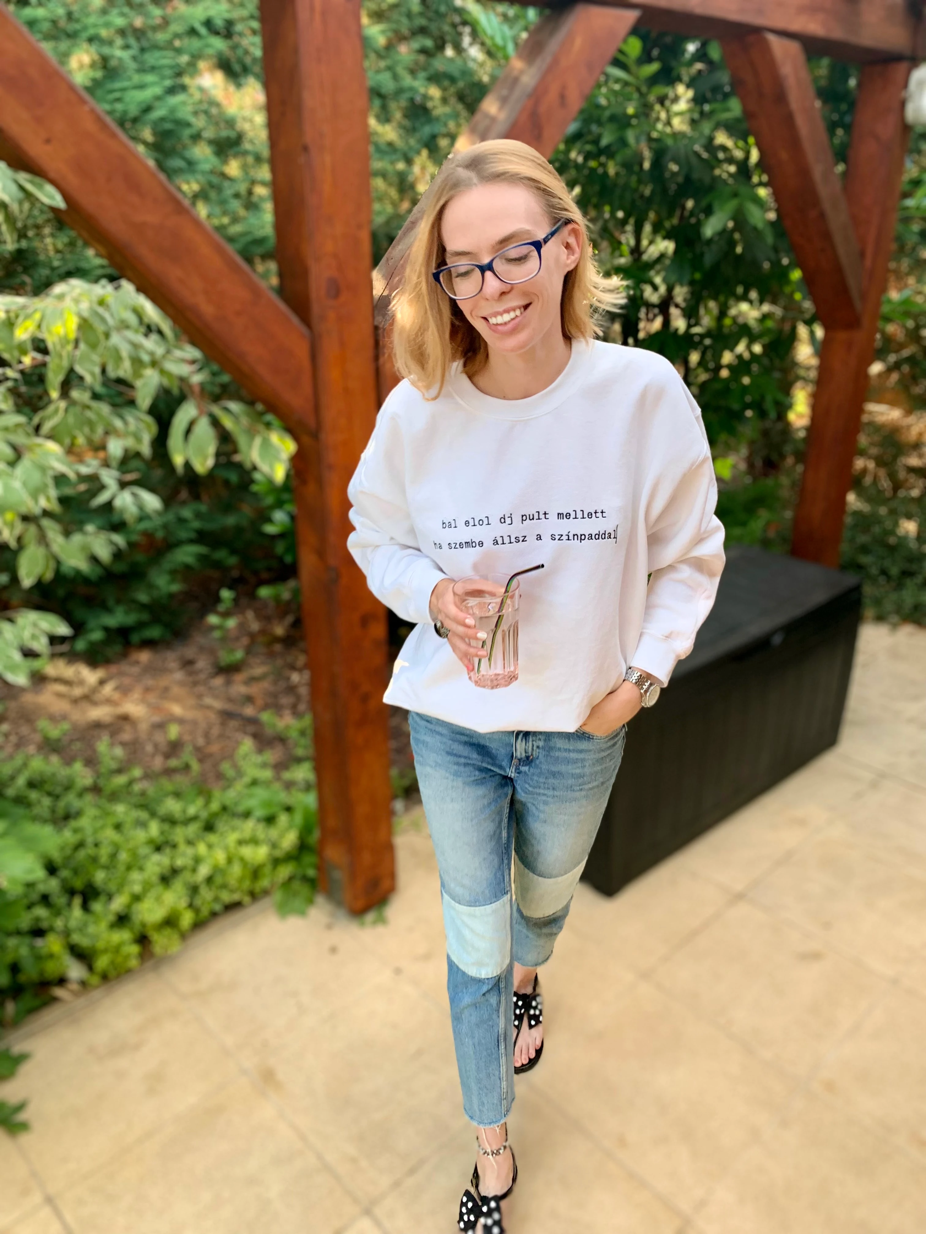 Mikor beköszönt a jóidő és átrendezem a gardróbomat, mindig elöl hagyok egy-két melegebb pulcsit a nyárra, mert kerti partikon, késő este jól szokott jönni. Ez a fehér, kényelmes pulóver az idei kedvencem, egyrészt fenntartható, magyar márka darabja, másrészt az elmúlt 10 évben, mióta fesztiválra járok, szerintem negyven sms-t küldtem el, pontosan ezzel a szöveggel. Hosszú ideig azt gondoltam, hogy nem szeretem a bő farmereket. Ez a három éves darab változtatta meg a véleményemet és lettem örökös tagja a mom-jeans-t kedvelők csoportjának.