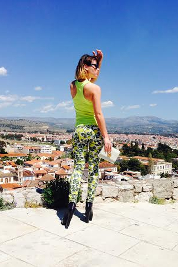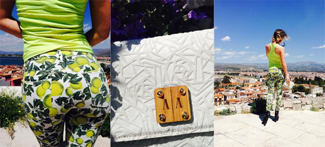 A mai nap különböző kiskereskedésekkel tárgyalok. Nem vagyok az a kosztümös, vasalt fehér inges "bizniszvuman". Általában az ilyen jellegű dolgokat a brand menedzserem végzi, de valakinek otthon is jelen kell lennie. Ezt a menő nadrágot még Rióban szereztem be. Szeretek színesen öltözni, mert ez kifejezi az egyéniségem, és oldja a hangulatot.
