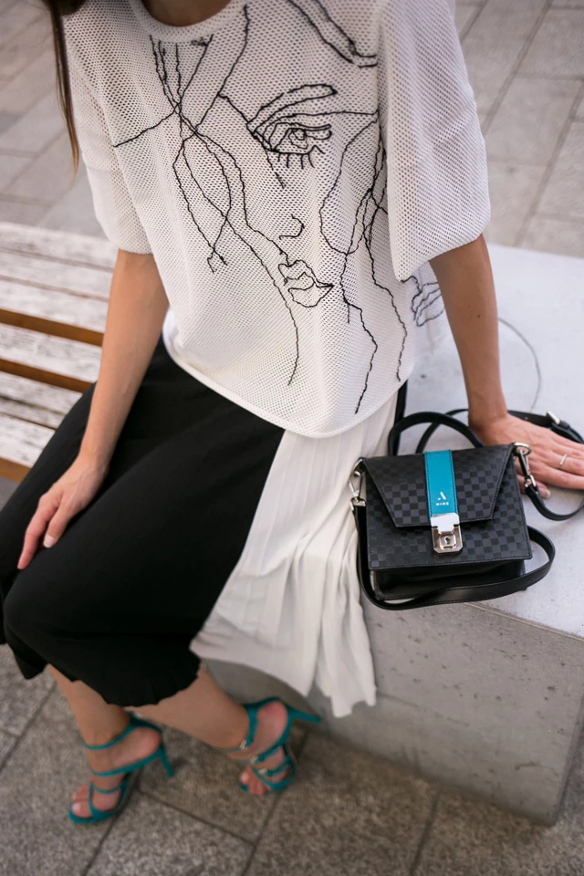Előfordul, hogy az én lábamra is felkerül egy csodaszép magassarkú. Volt szerencsém modellként dolgozni Milánóban Gianvito Rossi-nál és tőle kaptam ezt a türkiz csodát , amihez Alma Abonyi táskát választottam. Ritka eseményekre veszem fel és nagy becsben tartom. A felsőmet én készítettem egy kézzel hímzett illuxtrat #wearablart darab. Idén voltunk 7 éve együtt a párommal és egy szuper vacsorával ünnepeltük, amire ezt a szettet választottam. Azért is volt nagyon különleges mert jövőre ilyenkor már férj és feleség leszünk.