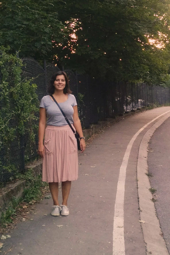 Esti sétához választottam a könnyed, nyári aligrózsaszín szoknyát egy egyszerű, szürke pamutpólóval. A legtöbb nyári szettemhez a flitteres ezüst cipőmet szoktam felvenni, hogy valami funkyt csempésszek a hétköznapokba.