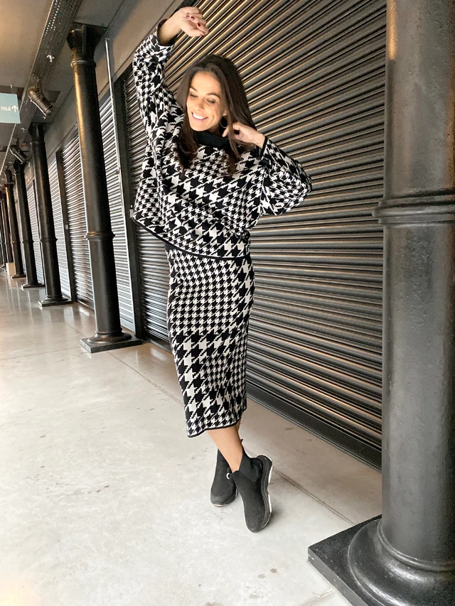 Alapvetően kedvelem a garbót, így viszonylag gyakran hordom az ilyen darabokat. Újabban a szoknyák is egyre nagyobb számban találhatóak meg a ruhatáramban. Korábban nem szívesen viseltem őket, mert túl izmosnak, erősnek éreztem a lábamat ahhoz, hogy szoknyát viseljek. Mára ez megváltozott, így jöhetnek ezek a darabok is! Ebben a szoknyában különösen szeretem, hogy azáltal, hogy kötött kellemes meleget ad, így a téli időszakban is bátran viselhetem, nem fogok fázni. Szeretem ezeket a darabokat egy-egy sportosabb csizmával kombinálni, így bármerre is visz az utam kényelmes, ám mégsem teljesen hétköznapi szettben zárhatom a napot.