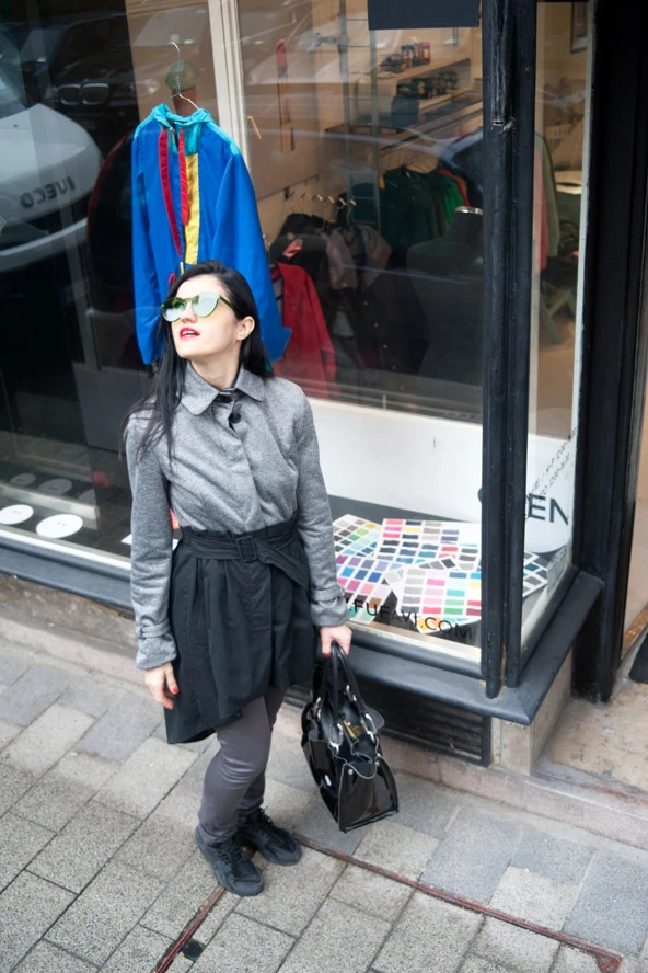 Szokásos módon zsúfolt hét elé nézek, irány a bolt. Ez a kabát mintha egy dzseki és egy szoknya lenne egyben, imádom, amikor a hátul hosszabb része uszályként jön utánam menet közben az utcán. A felső része vízlepergetős, mégis szövethatású anyagból készült, ami elképesztően jó viselet. A cipőm jelenleg a legnagyobb kedvencem, ilyen kényelmes darabom még szerintem soha nem volt.