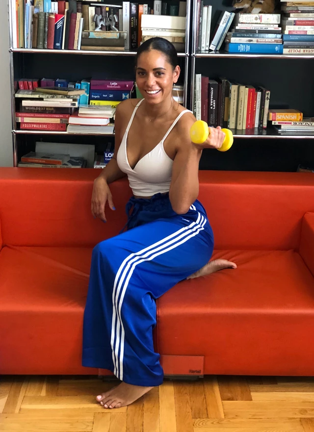Elég aktív életet élek, a munkámnak és a személyi edzőmnek, kisfiamnak Marcusnak köszönhetően. A rohangálós mindennapjaim mellett néha jut időm egy kis súlyzós edzésre is otthon.