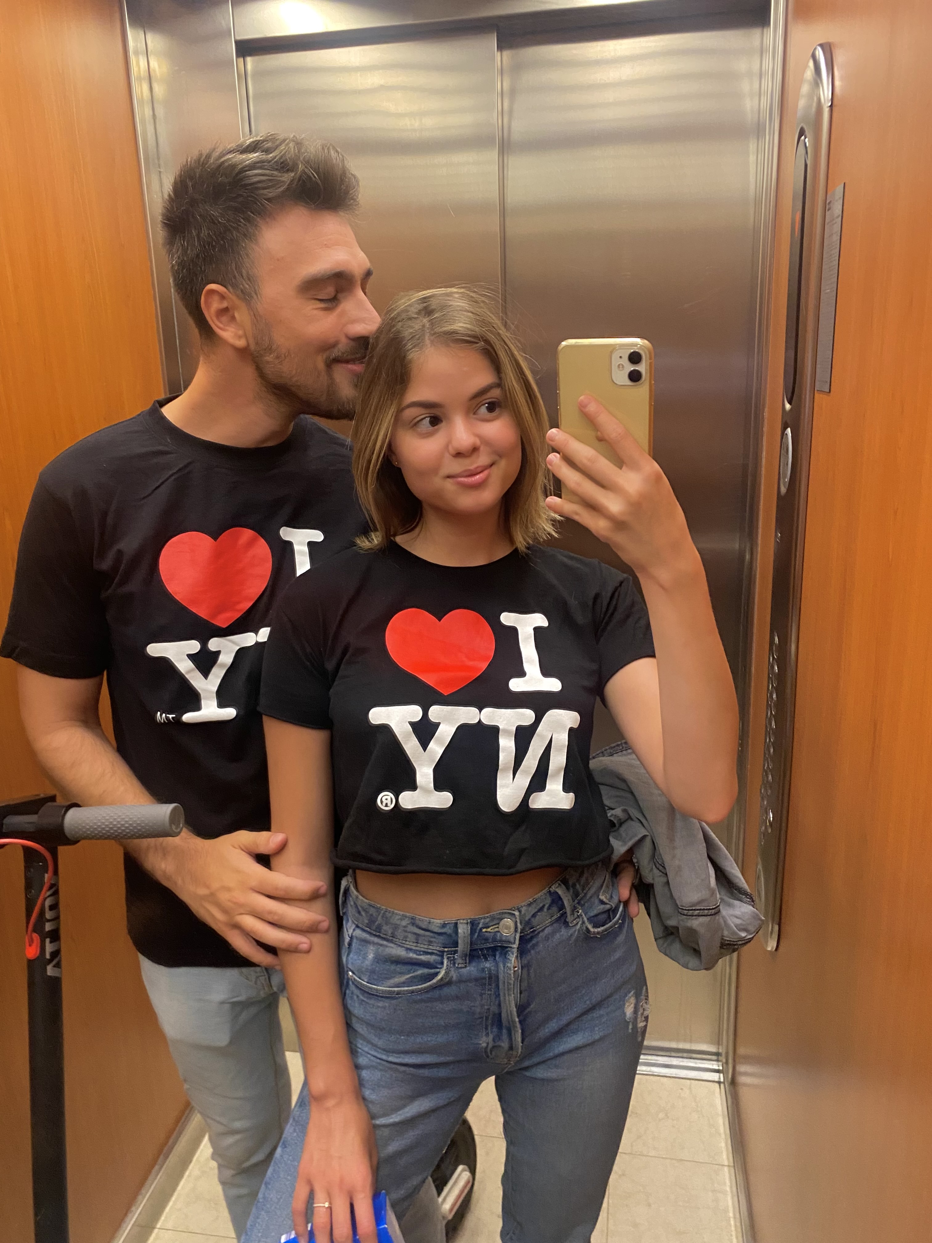 A pólót New Yorkban vettük egy szuvenír boltban. Ez a nadrág a kedvenc slimfit farmerem, két éve vettem a Stradivariusban, azóta keresek hasonló nadrágot, de sajnos nem találok sehol. A cipő pedig a kedvenc rohangálós Vans cipőm.