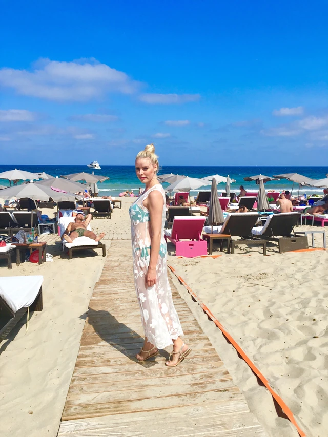 Szinte elviselhetetlen az ibizai hőség. Napközben többnyire otthon vagyunk a villában ès pancsolunk. Csak délután 4-5 után lehet kimozdulni. Minden nap más-más beachre látogatunk. Íme két szett, az egyiket még otthon, a villában, a másikat már Playa d`en Bossa egyik beach klubjában viseltem.