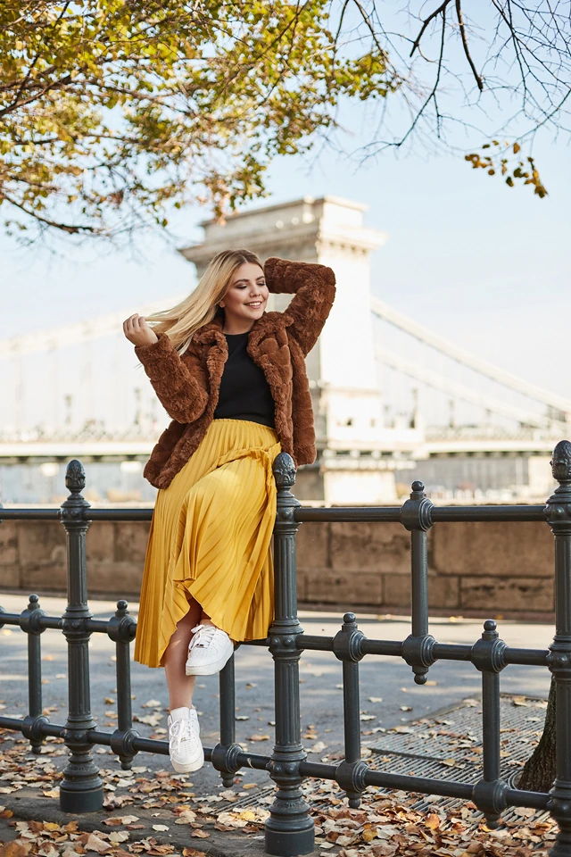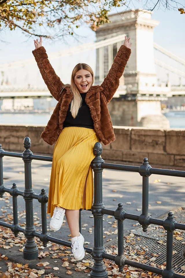 Ruzsa Norina egy olyan nő, aki imád utazni. Egy olyan utazó, aki hétfőtől péntekig, 09:00-től 17:00-ig dolgozik, és akinek ugyan annyi szabadsága van, mint másnak. Az általa látott csodálatos világot pedig a @norinaround Instagram oldalán és blogján örökíti meg. Szeret tartalmat átadni a posztjaival, így sok hasznos tippet, tapasztalatot oszt meg. Norina védjegye a pliszírozott szoknya, melyből rengeteg színt beszerzett már és képei ikonikus darabjaivá váltak. Ezek a szoknyák viszont nem csak a képek szerves részei, hanem a rohanós mindennapjaié is.