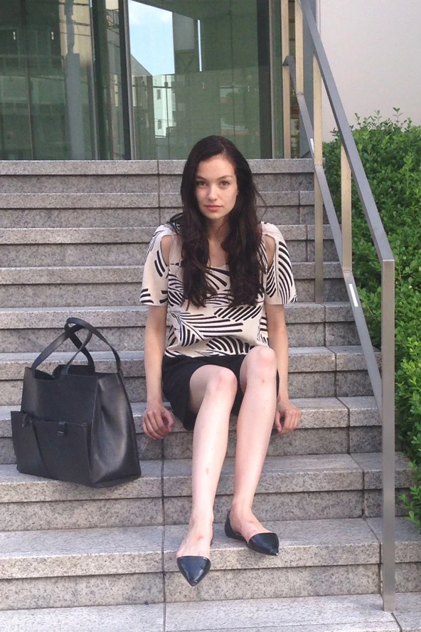 Szerdán dolgoztam, ez a kép a fotózás után készült, az esti castingok alatt. Ez a pálmaminta nálam idén nyáron favorit, imádom, hogy milyen erős hangulattal képes megtölteni egy-egy szettet. Ezen a képen egy lapos talpú, hegyes orrú cipőt viselek, mely tökéletes alternatíva arra az esetre, ha elegáns cipőt szeretnénk húzni de nem szeretnénk magas sarkakon tipegni egész nap. A bermuda nadrág szintén az egyik nyári favoritom, ez a hatalmas táska pedig már egy éve kitartóan cipeli a 20 kilónyi cuccot, amelynek természetesen minden darabjára 0-24 szükségem van.