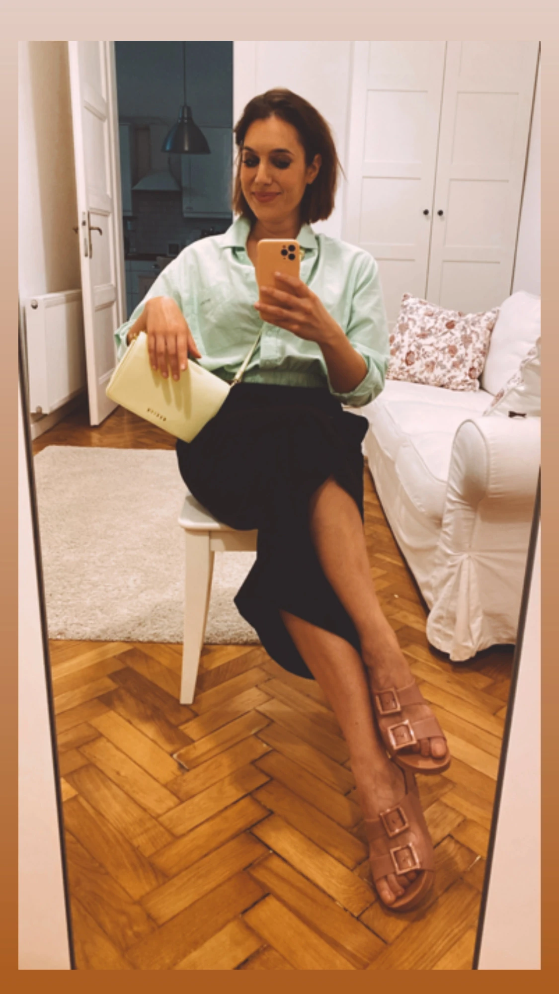 A mentazöld az egyik kedvenc nyári színem, ráadásul ezt az inget egy forgatásról vittem haza, jelmezem volt! A film címe “Együtt kezdtük” és nemsokára láthatjátok a mozikban! Tökéletes hozzá a Mohito táskám!