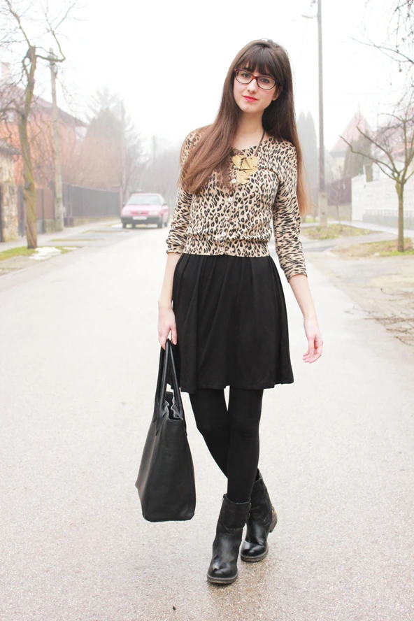 Az utóbbi években nagyon megszerettem az állatmintát, pedig sose gondoltam volna, hogy egyszer még én is behódolok neki. Főleg a párducminta vált nagy kedvenccé, mert mindig a 60-as évek divatját juttatja eszembe. Ma a cicás vonalú szemüvegemmel és egy fekete ruhával párosítva egy kis retro hangulatot próbáltam felidézni.