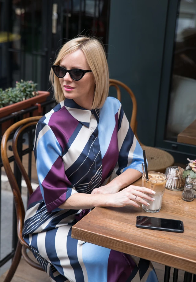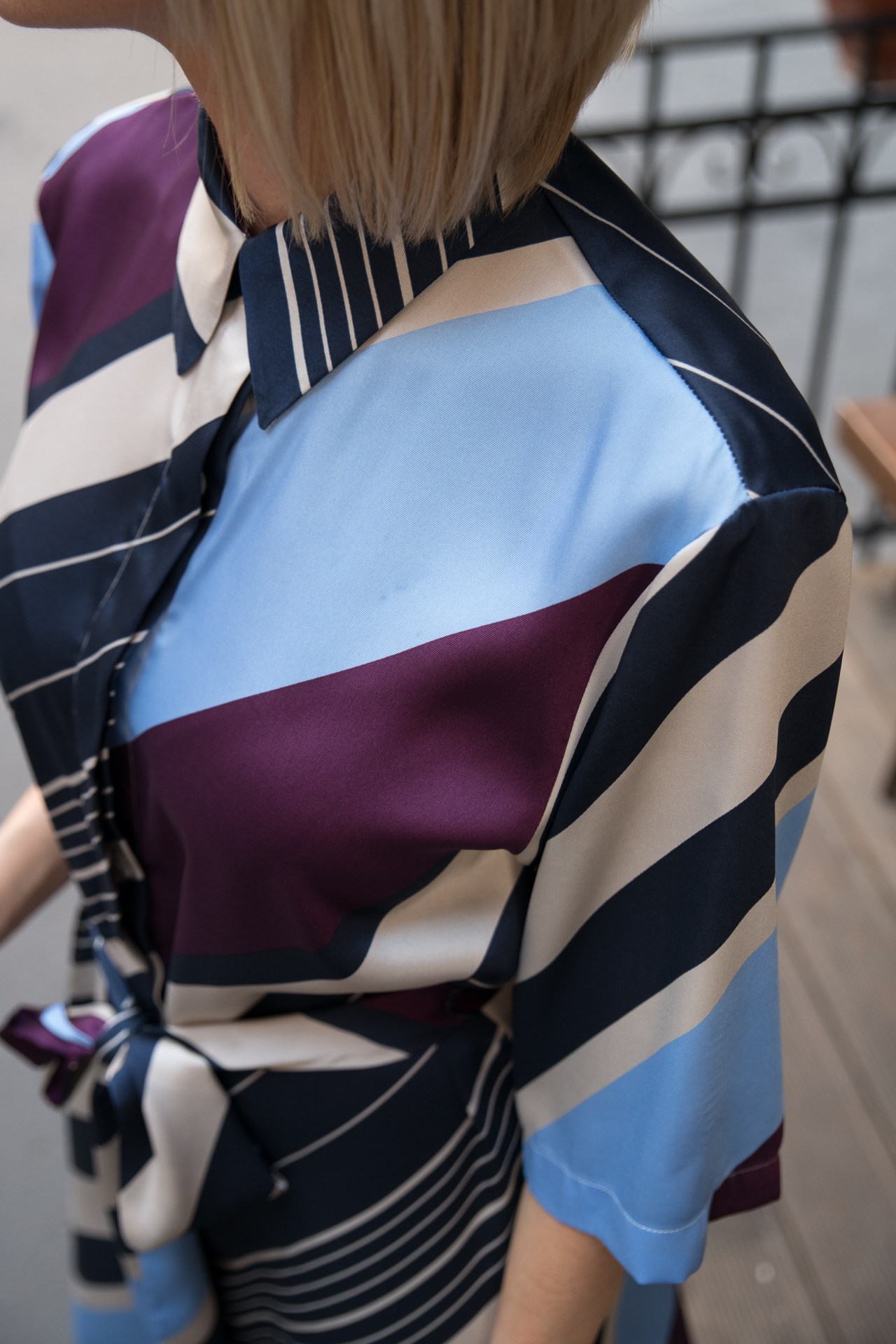 Javából tombol a nyár, ezért arra gondoltam, hogy mai rohangálós napomhoz, egy színes csíkos, lezser ruhát választok a hozzá passzoló derekán megköthető övvel. Ez a ruha a szívem csücske, mióta megvásároltam, mert mintás mégis modern. A színvilága számomra nagyon izgalmas, variálhatósága miatt pedig tökéletes minden alkalomra. Egy színben hozzá illő kék magas sarkúval dobtam fel, így készen is van a mai outfittem.