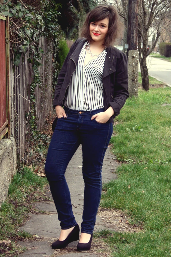 Erre a napra kicsit nőiesebbre vettem a figurát, de hogy jobban passzoljon hozzám a szett, egy vagányabb dzsekit és nyakláncot is választottam.