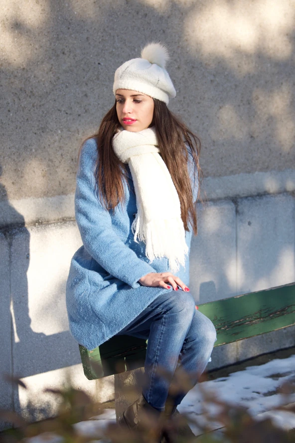 Az összes kabátom közül ez a Marks Spencer-ben vásárolt kék és fehér darab a kedvencem. Egy éve ruháztam be rá, és azóta is életem egyik legjobb vételének tartom. A látszat ellenére nagyon meleg, és az a kedvencem benne, hogy bárhova remek választás, egyszerre elegáns, de suliba felvenni sem túlzás. Egyszerű, kék farmerral és a képen látható fehér sapkával és sállal szoktam hordani, valamint egy élénk színű rúzzsal teszem teljessé a szettet.