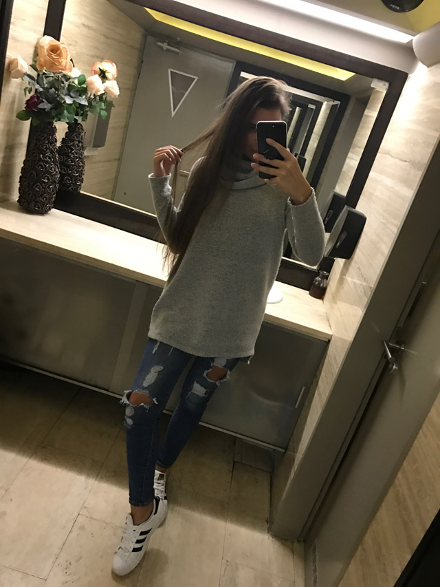 Amikor nem lehetek annyira sportos, mert az edzés mellet fodrász, és tanulás is szerepel a napi teendők között, akkor is marad a szakadt farmer és a sportcipő, így is lazábbra tudom venni a szettem.