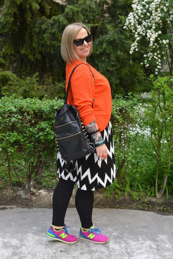 A feketét mindig fel lehet dobni valamivel, egy ütős ékszerrel, vagány cipővel vagy valami erőteljes színű kabáttal, mint ez a narancssárga blézer.