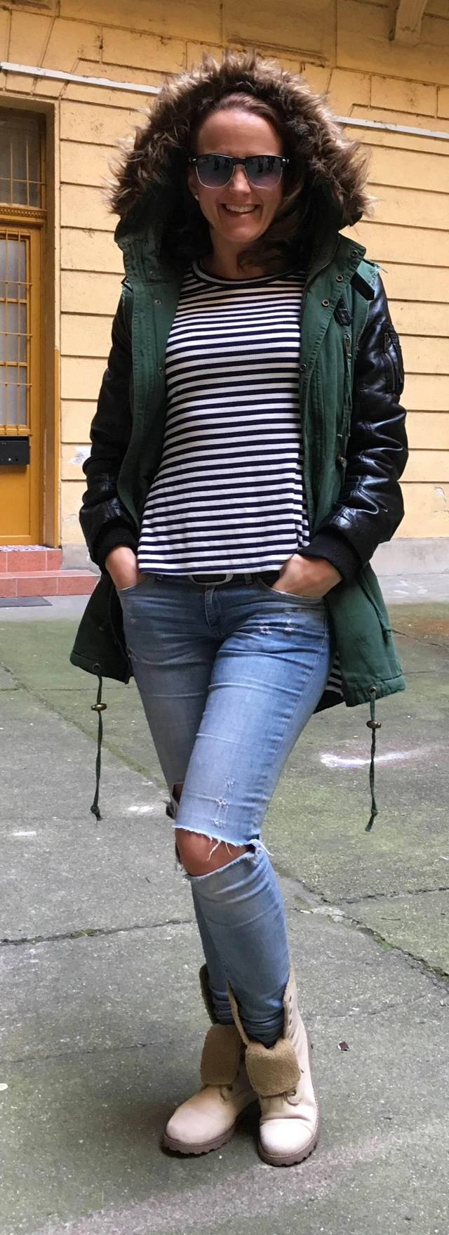 Ma szabadulós játèkra mentünk Mr. Vasovskival meg a kedvesével, amihez kényelmes ruházatot javasoltak. Úgyhogy felvehettem a New Yorkeres keki kabátom, az imádott Timberland bakancsom, a ruhatáramban minden színben jelenlévő slim H&M szaggatott farmert és az Individuale Webshop kifejezetten nekem, az országba hozott felsőjét.