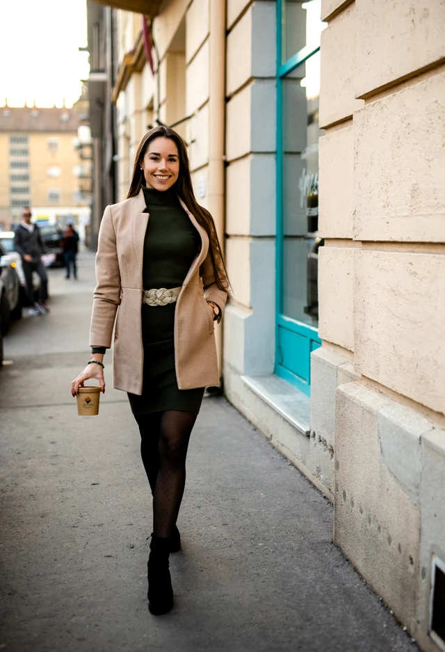 Utcás kép - ruha: Dejavu Női Divat, kabát: F&F, harisnya: Calzedonia