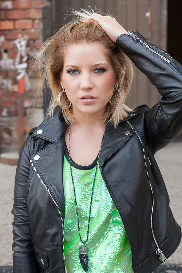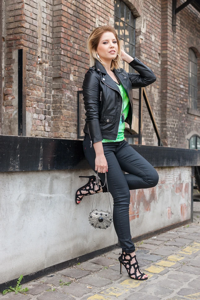 Szabó Zsófi motoros bőrdzsekiben