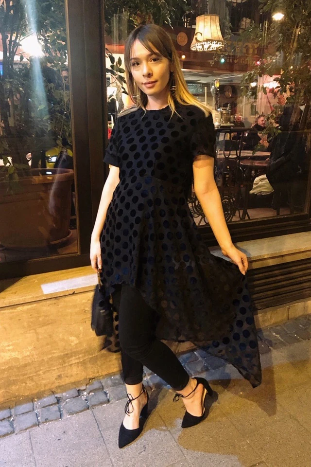 A mai napom az ünneplés jegyében telik, ami a szettemen is meglátszik. A boldogságom tárgya nem más mint, hogy ma jelent meg a debütáló kislemezem "Scale Of Tones" címmel, amiért iszonyatosan boldog és izgatott vagyok, így muszáj volt egy kicsit kicsípnem magam. Az ünnepléshez ezt az átlátszó, pöttyös Zara felsőt választottam egy basic fekete magasderekú nadrággal és magas sarkú cipővel. A kiegészítőknél az ezüst mellett döntöttem, fülbevalónak az egyik kedvenc hazai designer ékszermárkám, a Leanea egyik darabját választottam, a gyűrűt pedig a párom édesanyjától kaptam ajándékba és egyszerűen imádom.
