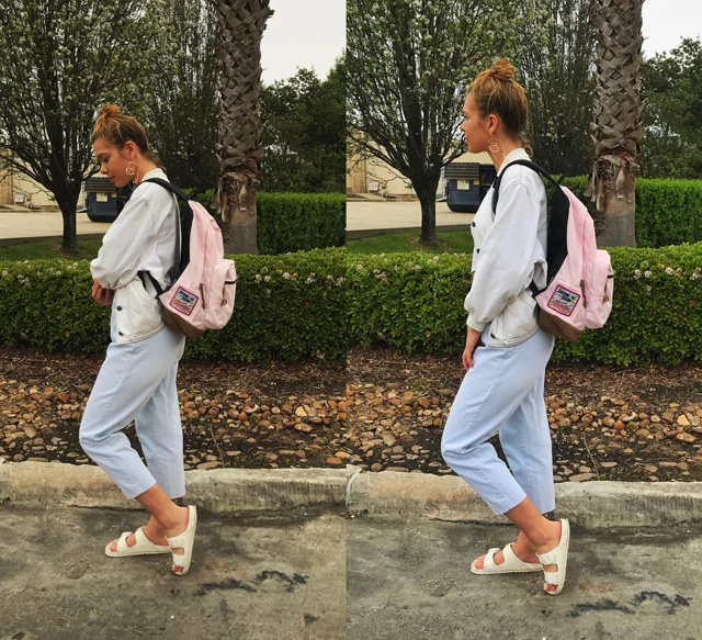 Az utóbbi időben nagyon rákattantam a denim on denim (farmert farmerrel) összeállításokra. A mai szettemben is erre fektettem a hangsúlyt. A basic szereléseket szeretem feldobni egy-egy izgalmasabb/feltűnőbb kiegészítővel mint például ez az "arcos" fülbevaló. A fesztivál minden előadót megajándékozott egy ilyen szuper hátizsákkal ami a színe miatt nagyon jól illik a szetthez.