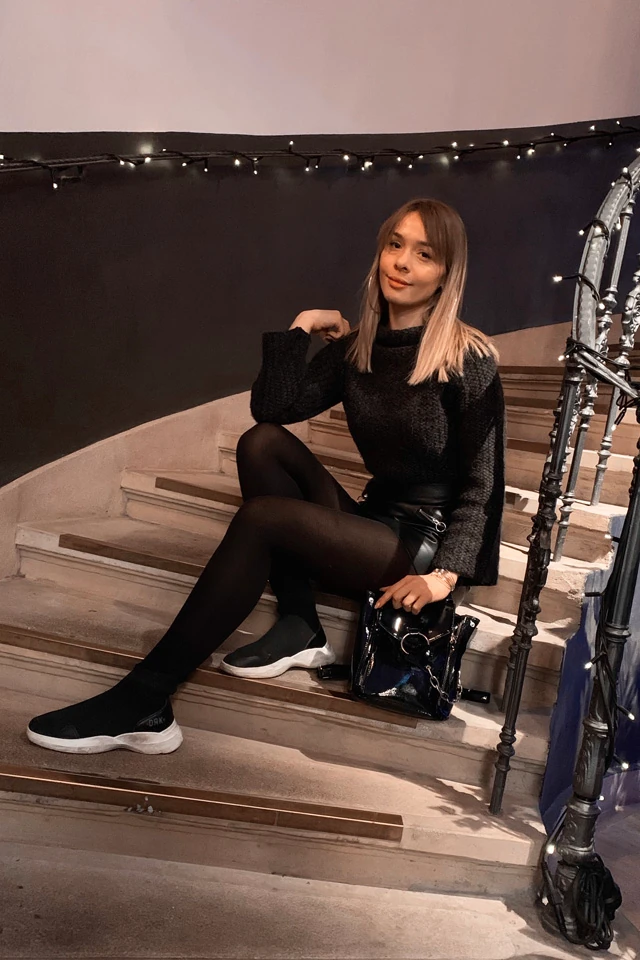 A hét végére egy kicsit basic-ebb összeállítást hoztam, ami mondhatni magába foglalja a kedvenc téli alapdarabjaimat. Imádom a jó, meleg, kötött garbó pulcsikat, mint amilyen ez a szürkés-fekete darab is, és a hideg ellenére - természetesen harisnyával - szeretek olyan szoknyákat hordani, mint ez a műbőr darab. A szettet a kiegészítők teszik egy picit izgalmassá, egy oversized karika fülbevalót és egy láncos, fekete műbőr hátizsákot vettem fel az összeállításhoz. A mai szereléshez választott Dorko "zokni-cipő" pedig szintén az idei tél egyik favoritja nálam.