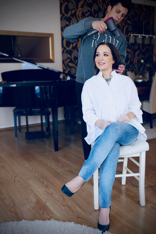 A hét majdnem minden napján interjút adok, vagy fellépésem van. Ilyenkor fontos a hibátlan smink és frizura. Ezért is örülök neki, hogy Dyson Supersonic hajszárítómmal akár minden nap könnyedén és a haj sérülése nélkül tud Papp Zsolti fodrászom különféle kreációkat készíteni.