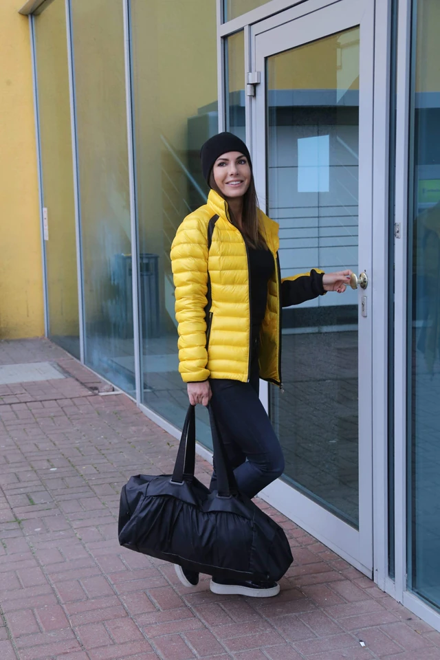 Éppen indulok edzést tartani, így egy laza szettet választottam. Ez a kabát egy igazi "meglátni és megszeretni" darab volt. A színe pedig nemcsak engem dob fel, de másokat is, folyton megdicsérik.
