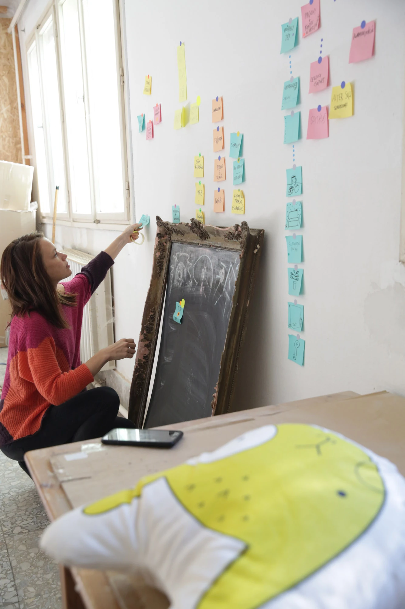 Kócos hétfő reggel a Varázspalló műhelyben. Egy ilyen nagyon esős, szürke "Mikor lesz már tényleg tavasz? " napon, a műhely festékei mellett kellenek a színek már a reggeli felöltözésnél is.